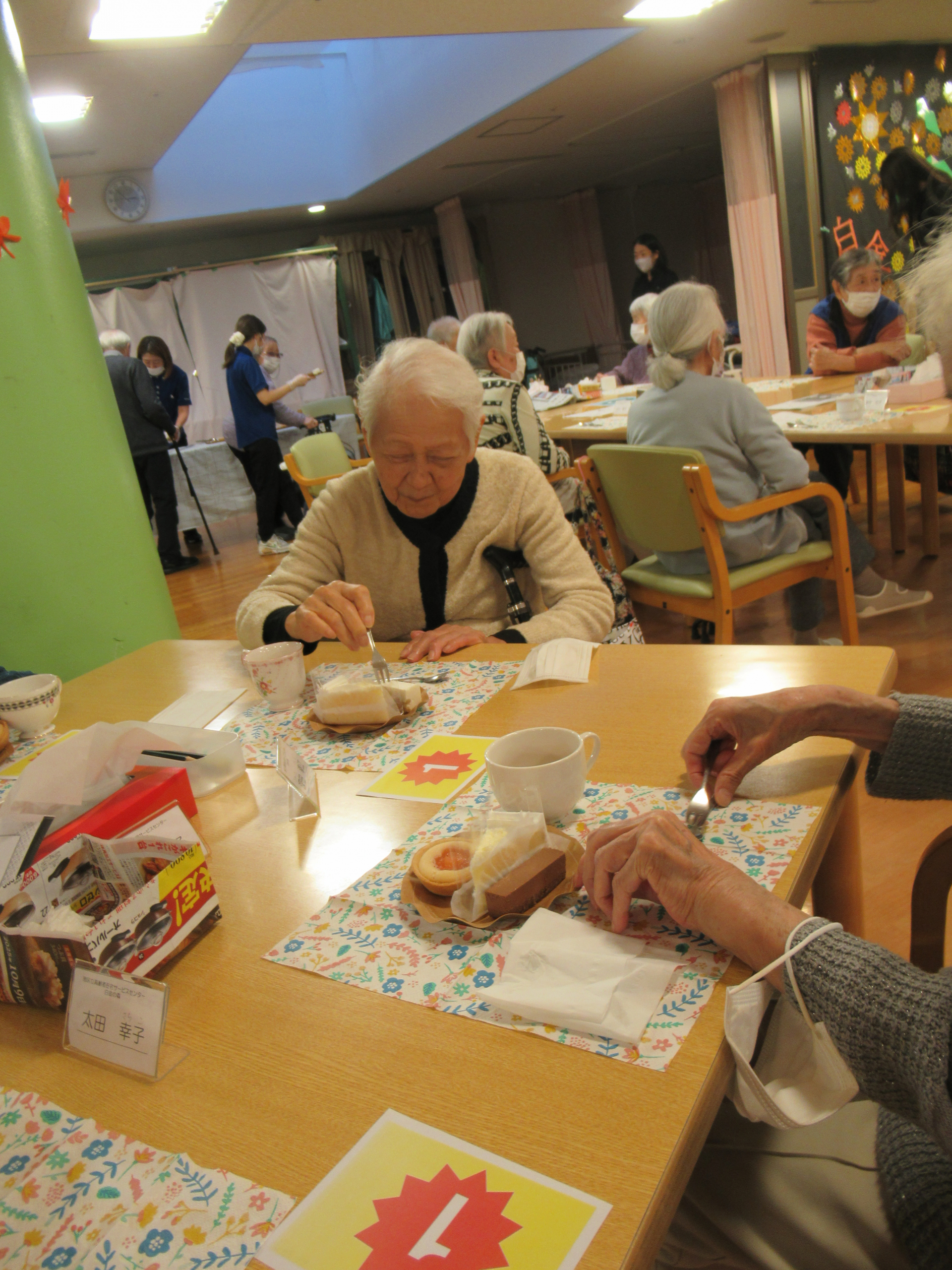 食欲の秋も終盤ですが、白金の森デイサービスでは今日「ケーキバイキング」を開催しました!
