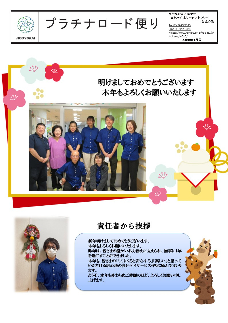 2026.01.05 お知らせ 1月の広報誌 Tweet シェアする 1月の広報誌をアップしました。 前の記事 2026.01.05 お知らせ 1月のイベントお知らせ 次の記事 2026.01.05 お知らせ 新春ヘアカット☆今年もよろしくお願いいたします! 一覧へ戻る