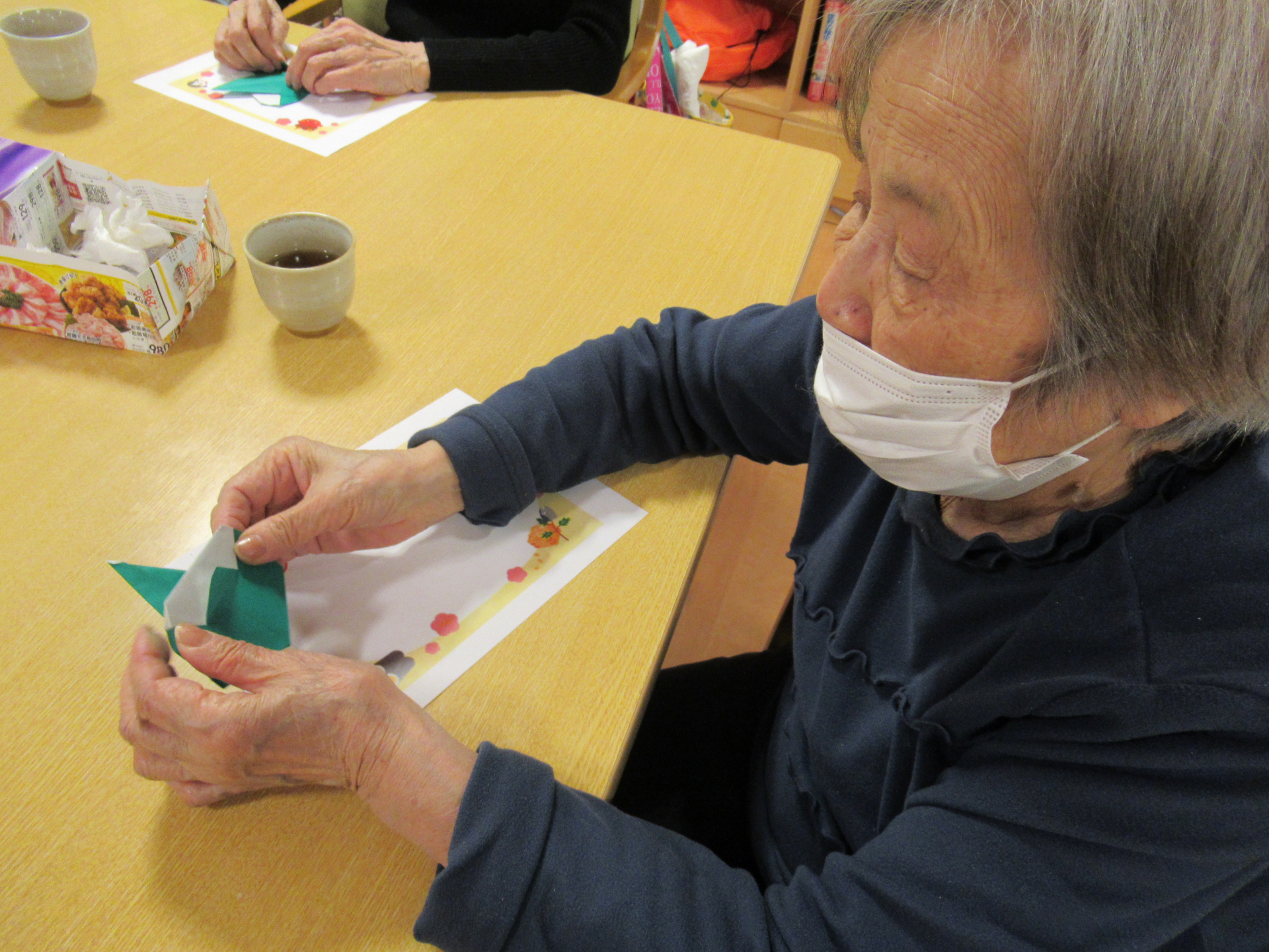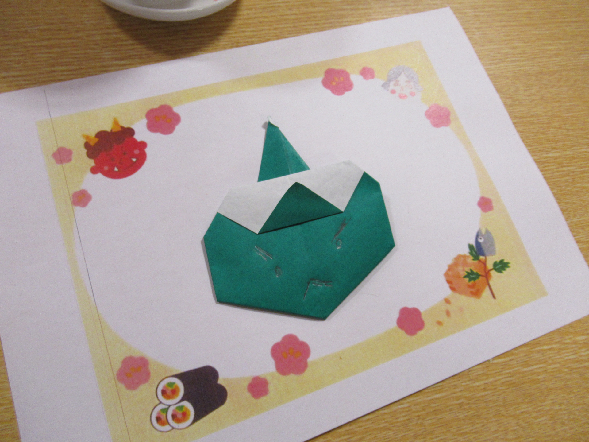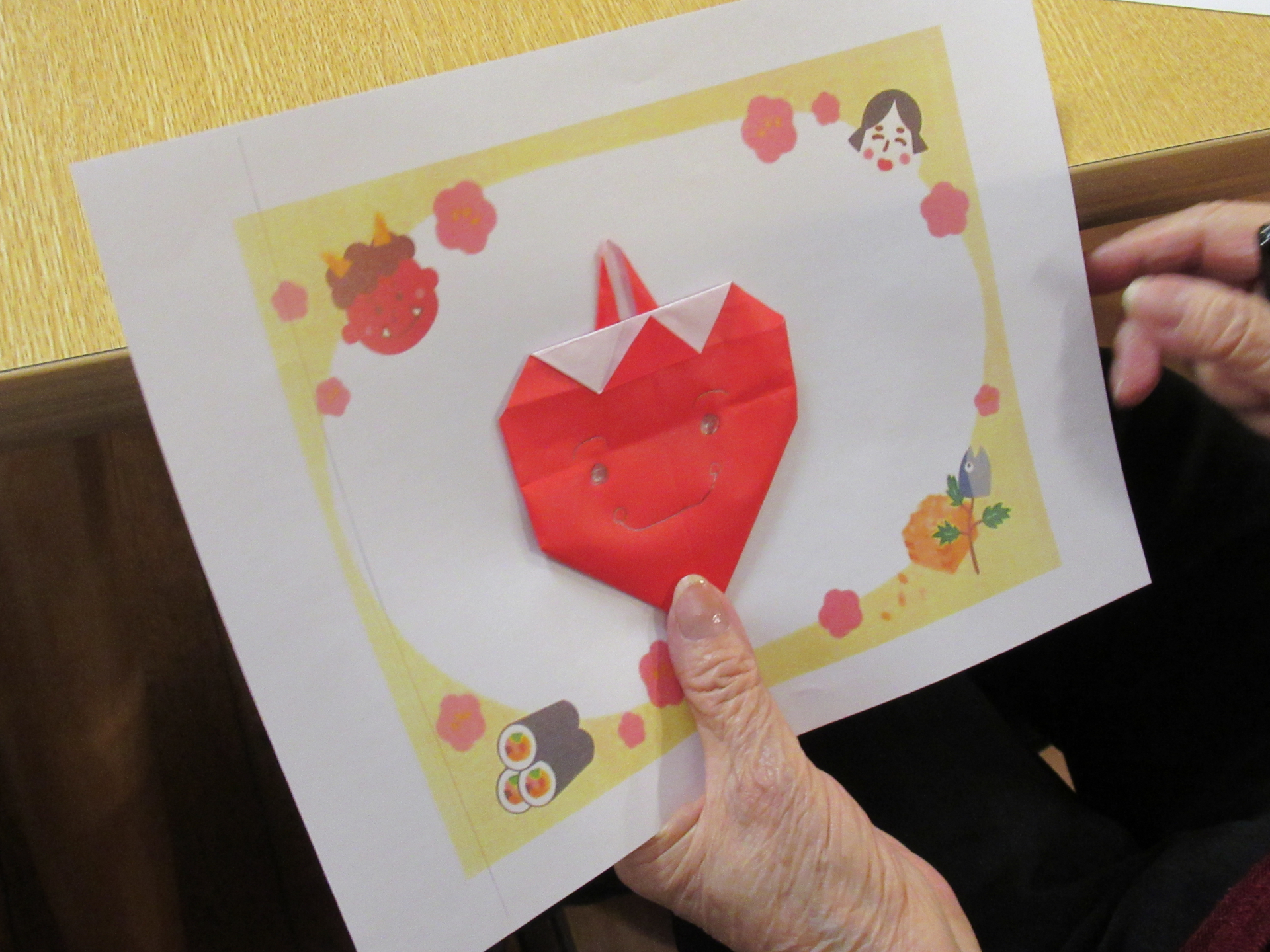そこで今日は、折り紙プログラムとして「鬼の折り紙」に挑戦です!
