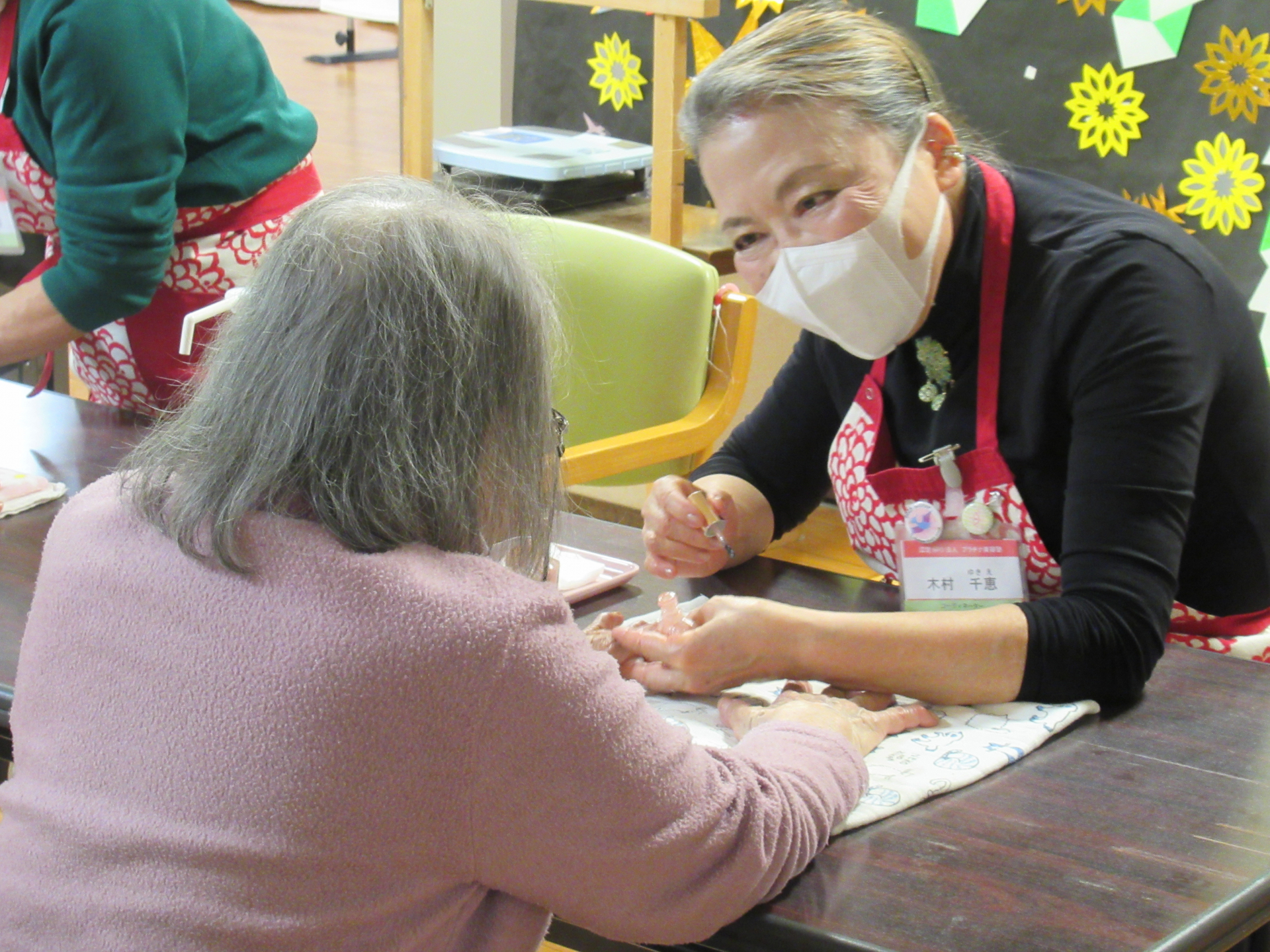 今日はボランティア・プラチナ美容塾のみなさんによる「ハンドマッサージ&ネイルケア」がありました!