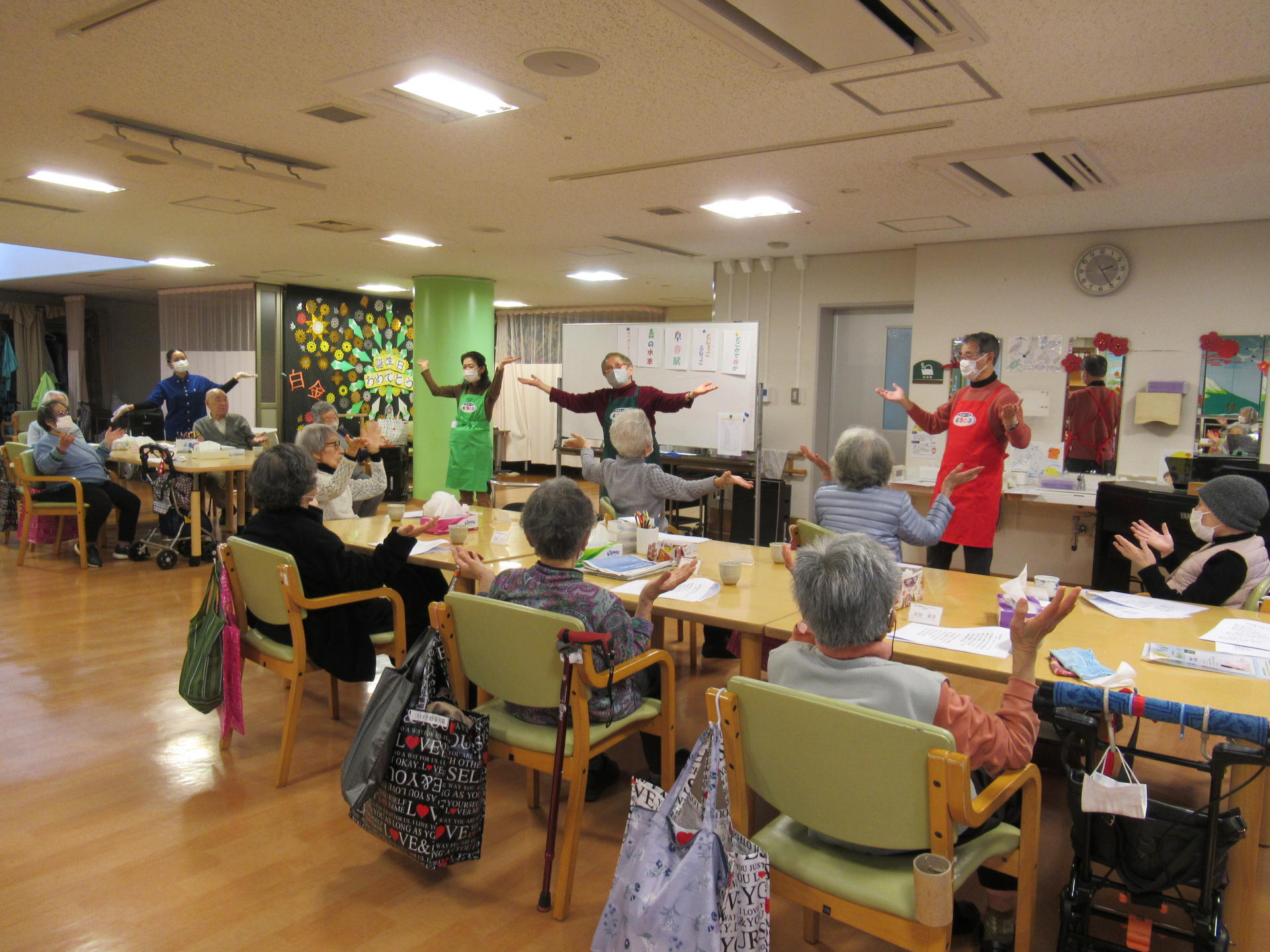 ひな祭りの3月3日、白金の森デイサービスの午後レクは、ボランティア「みなトーク会」のみなさんによる歌会でした!