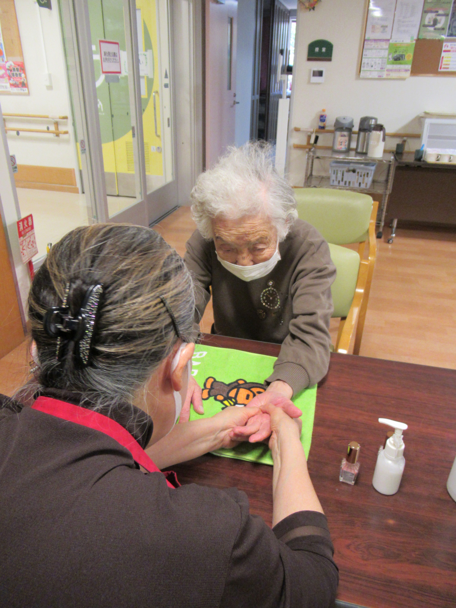 本日はハンドマッサージ&ネイルケアのボランティア「プラチナ美容塾」さんが来てくださいました♪