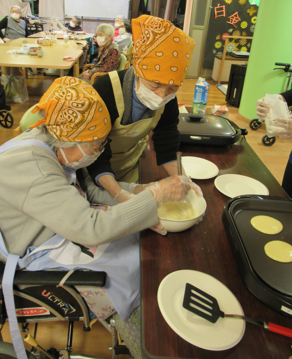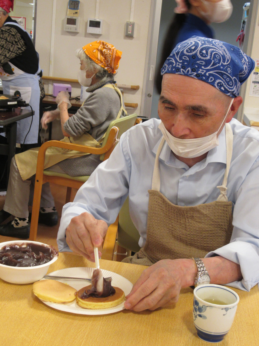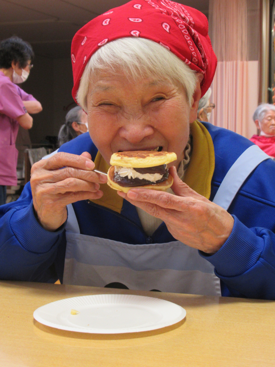 今月の調理レクは「どらやき」を皆様で作りました!