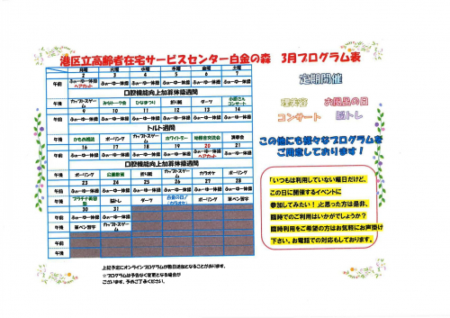 2026.04.03 お知らせ 淳子さんコンサートのお知らせ Tweet シェアする 今月の淳子さんコンサートの日程をお知らせいたします! 臨時利用のご希望もドシドシお待ちしております♪ 前の記事 2026.04.04 お知らせ 4月のプログラム表 次の記事 2026.04.01 お知らせ 4月の献立表 一覧へ戻る