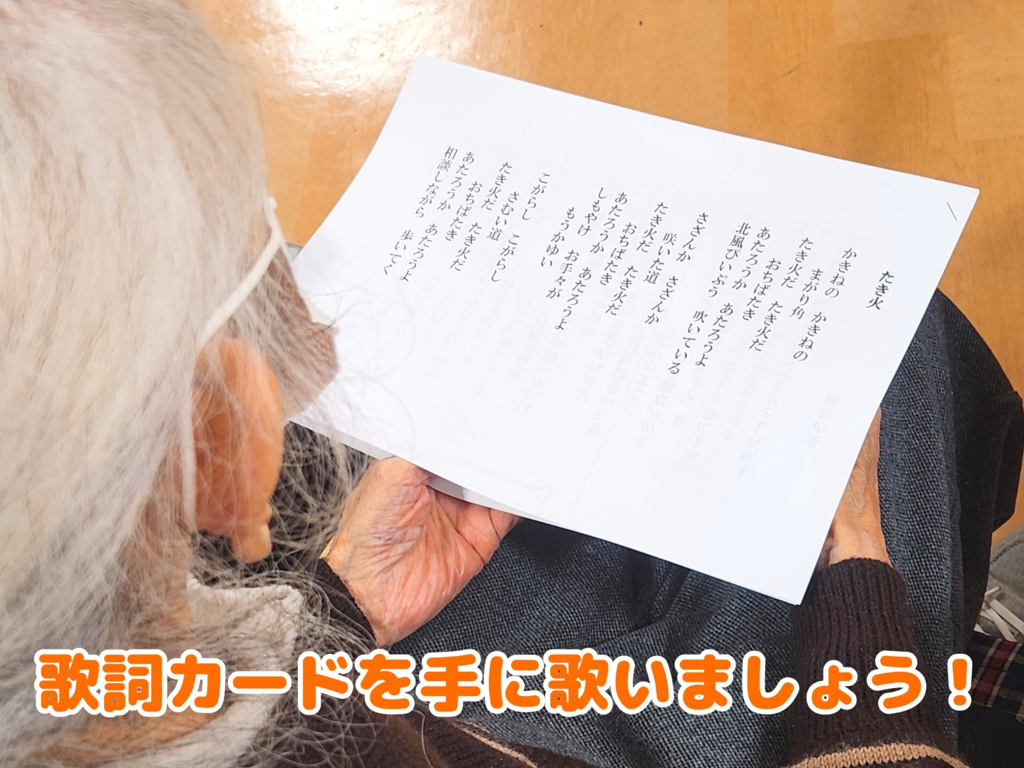 歌詞カードをめくる手の体操をし、お腹から声が出るように声出しをして、歌詞カードを貰ったら準備万端!