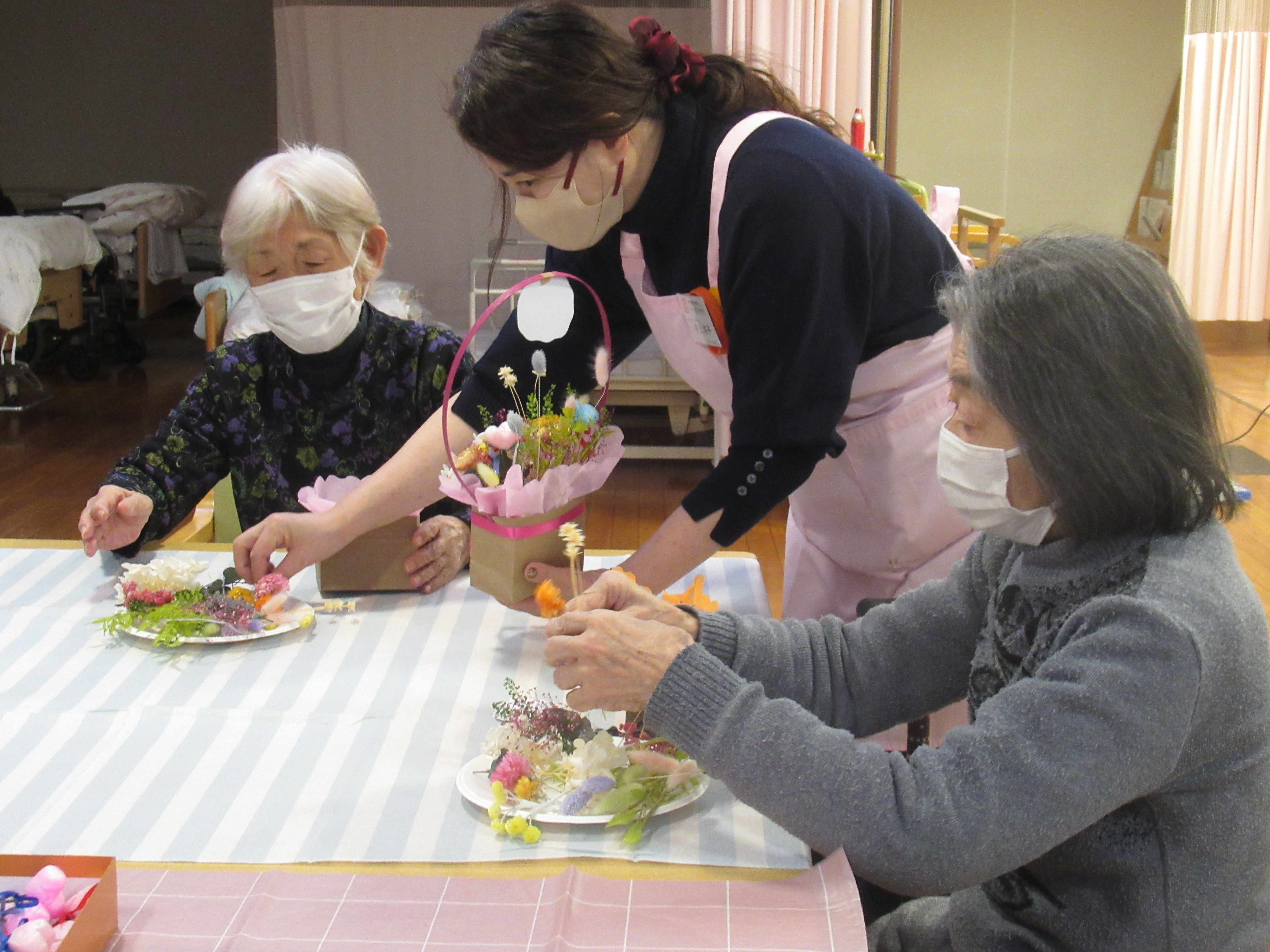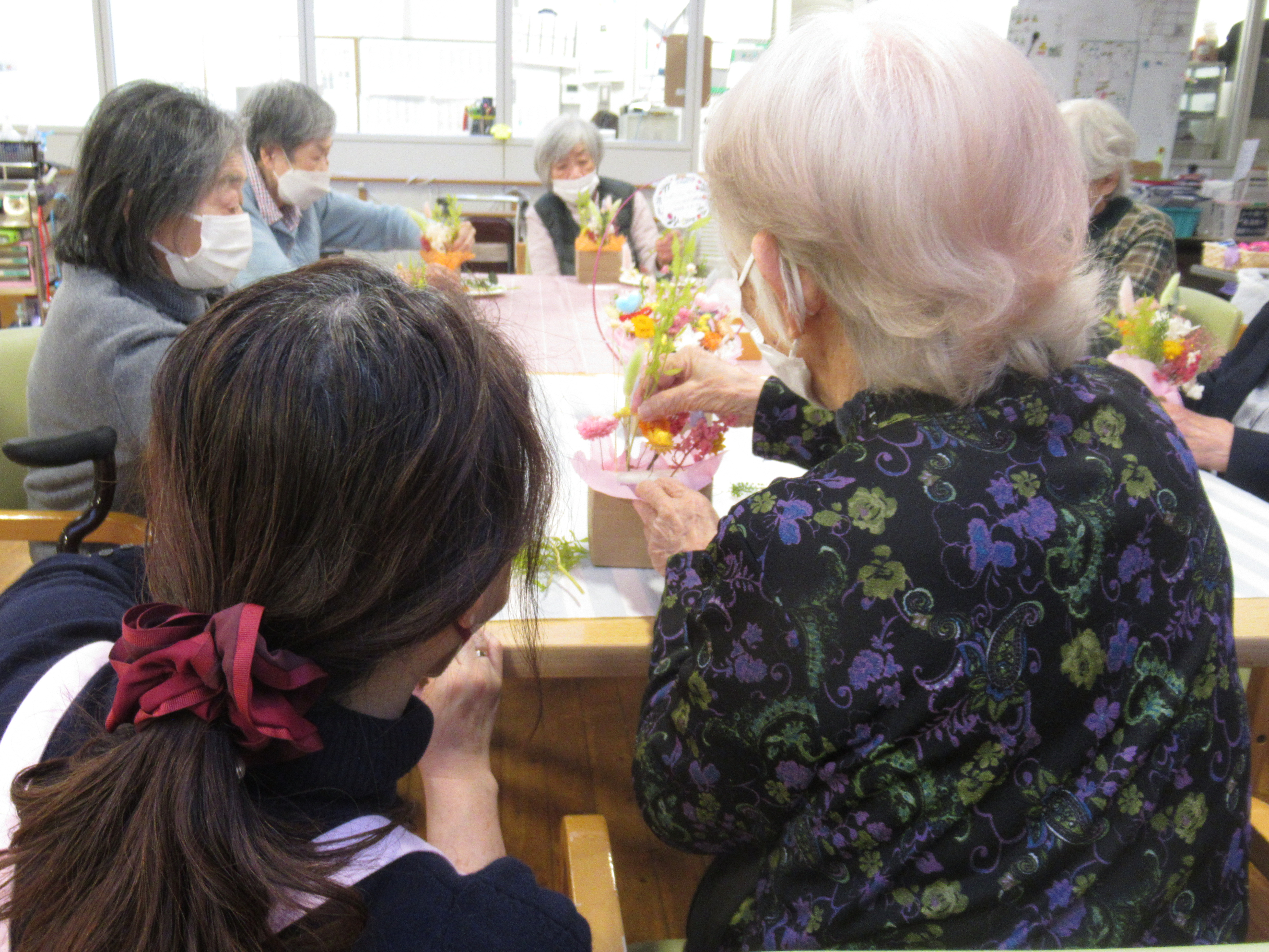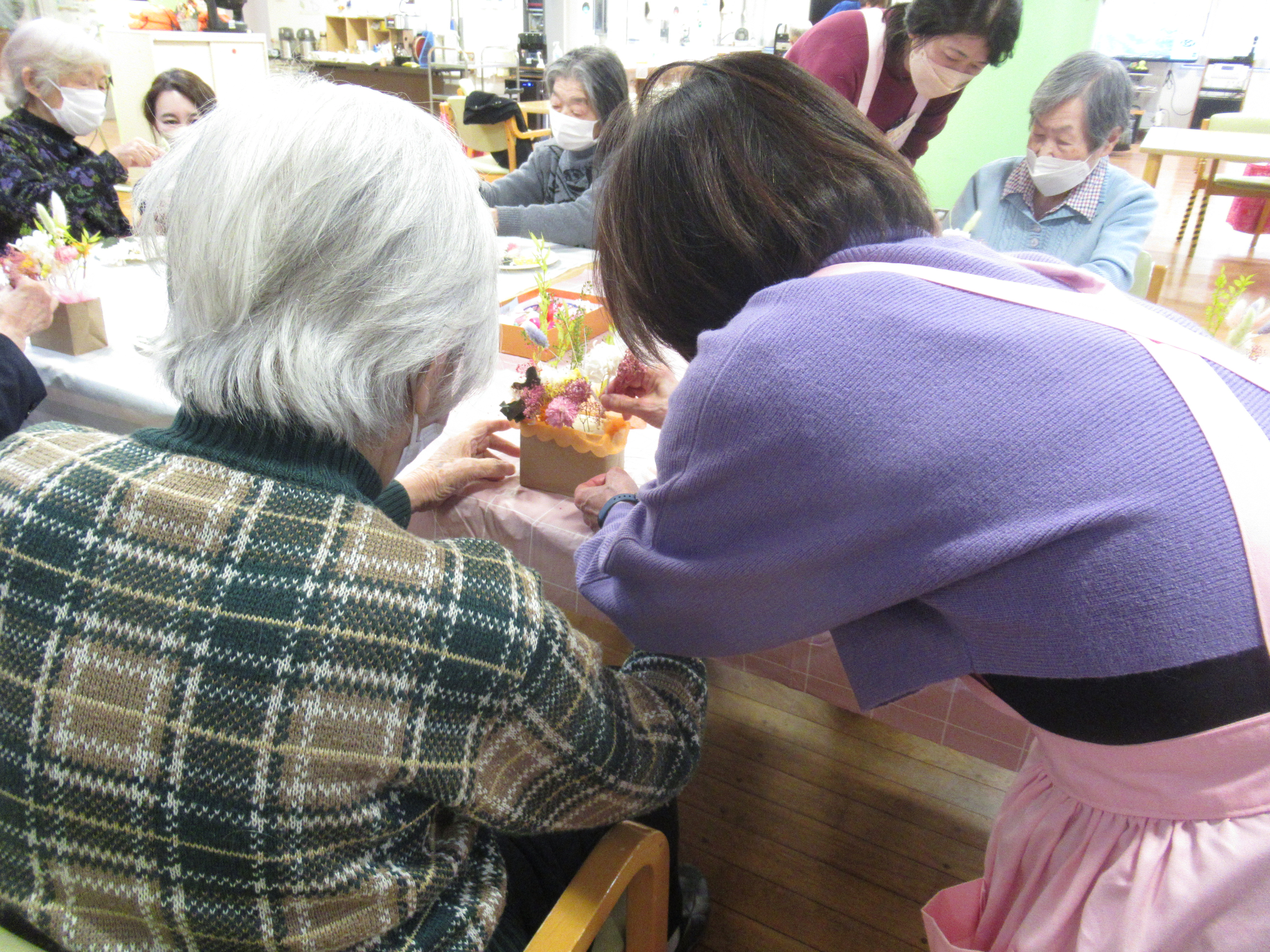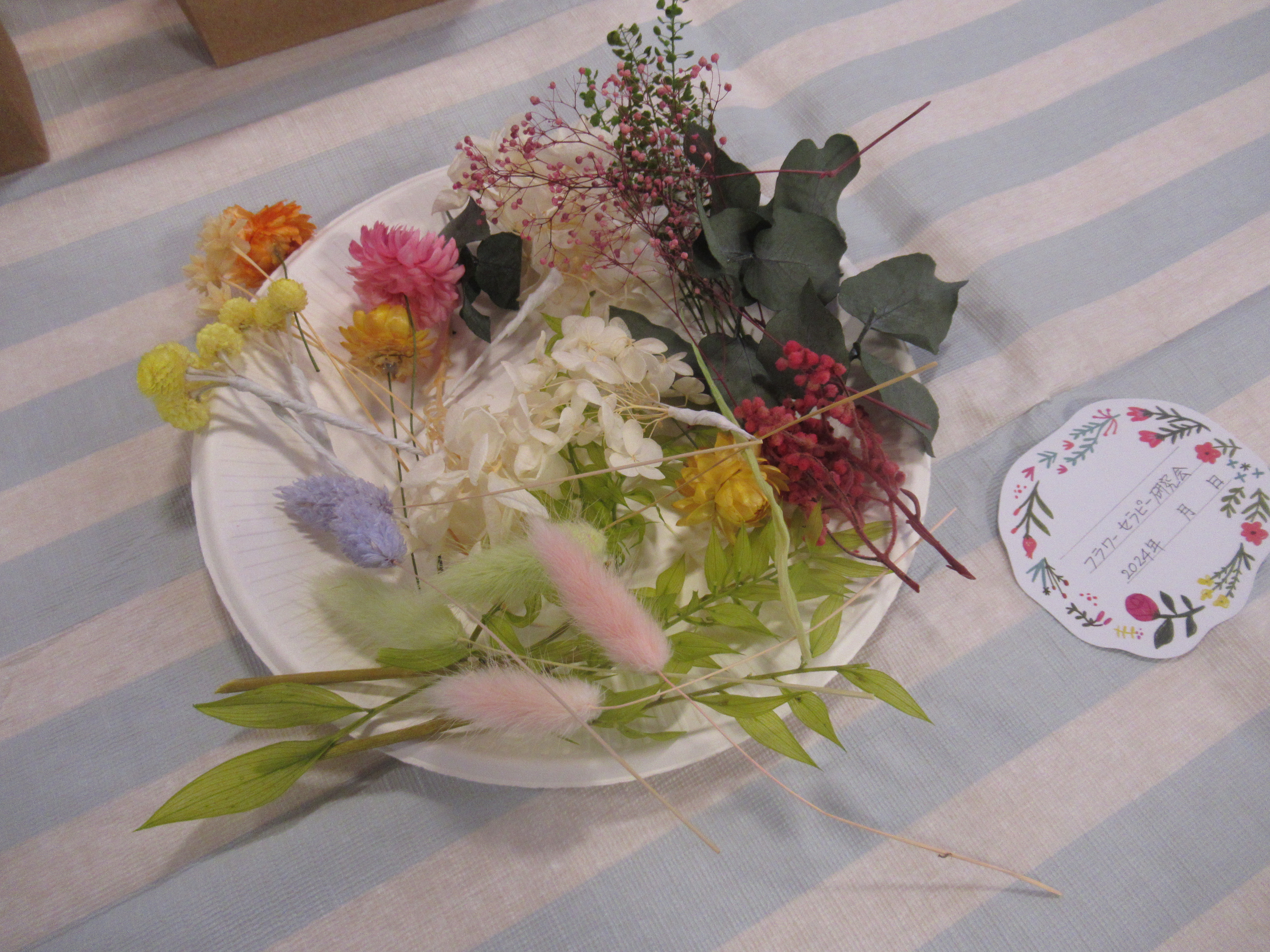 同じ素材でもご自身で色を選んだり、挿す位置を変えたりと個性豊かな創作になりました♪