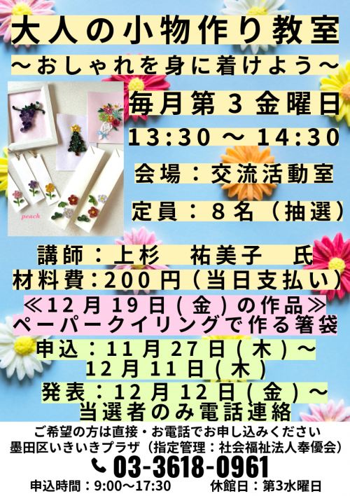 2025.12.07 NEW 12月のお花です。 ニュース 2025.12.06 NEW ファッションショー2025 フィナーレ°˖✧◝(⁰▿⁰)◜✧˖° 活動報告 2025.12.06 NEW ファッションショー2025 ドレスショーpart2°˖✧◝(⁰▿⁰)◜✧˖° 活動報告 2025.12.06 ファッションショー2025 ドレスショーpart1 °˖✧◝(⁰▿⁰)◜✧˖° 活動報告 2025.12.06 ファッションショー お着物披露°˖✧◝(⁰▿⁰)◜✧˖° 活動報告 2025.12.06 祝★いきプラ体操100回 ニュース 2025.12.06 冬の白鳥☆彡 活動報告 2025.12.04 12月のお楽しみタイム行いました♪ 活動報告 2025.12.03 ♦マギー隆司さんの愉快なマジックショー♦ 活動報告 2025.12.03 気軽にキレイ♥ネイル&メイク講座 活動報告 2025.12.02 和みヨガのご紹介☆彡 活動報告 2025.12.02 リボン付きのカゴ(´・ᴗ・`) ࣪ꕤ୨ৎ ׅ ˖ 活動報告 2025.11.27 12月分を募集中★大人の小物作り教室 お知らせ 2025.11.24 昭和レジェンズpresents♫古民家の小さな音楽会 活動報告 2025.11.23 冬のミミズク★ 活動報告 1 2 3 … 42