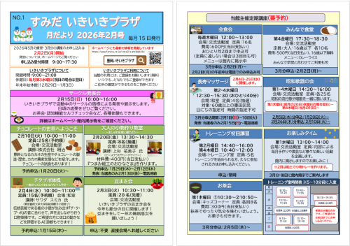2026.01.18 ほっこり亭落語会♪ 活動報告 2026.01.17 【参加者募集中♪】椅子に座って社交ダンス お知らせ 2026.01.17 【活動報告】元気に歩くための体操 活動報告(IN) 2026.01.16 2月3日はいきいきプラザで『豆まき会』をしましょう!! お知らせ 2026.01.15 『チタプポ体操~能のリズムでお口のフレイル予防~』★参加者募集中 お知らせ 2026.01.15 2月の予定表を発行しました。 お知らせ 2026.01.15 月だより2月号を発行しました。 お知らせ 2026.01.10 【活動報告】今日の和みヨガ 活動報告(IN) 2026.01.10 【参加者募集中♪】楽しく脳トレオンライン お知らせ 2026.01.10 今年も折り紙サロンが始まりました!! 活動報告 2026.01.08 笑って元気!脳活ゲーム教室 始動です٩(ˊᗜˋ*)و 活動報告 2026.01.07 1月のお楽しみタイムを行いました♪ 活動報告 2026.01.07 歳末たすけあい運動の共同募金を実施しました。 ニュース 2026.01.07 百合が咲きました(ू•̤ᗜ•̤❁)*。 ニュース 2026.01.06 新春 ほっこり亭落語会 開催します!!!! 活動報告 1 2 3 4 … 46