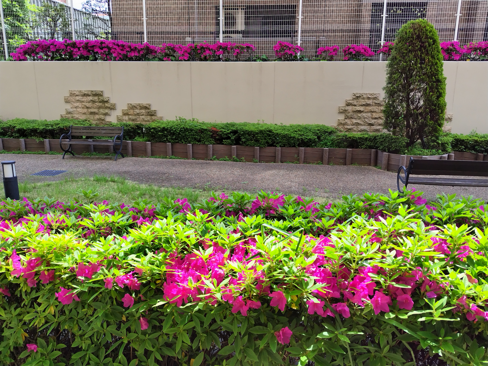 今朝は、ご利用者の方から「つつじが綺麗ね」の一声で、窓を開けて外を見てみました。