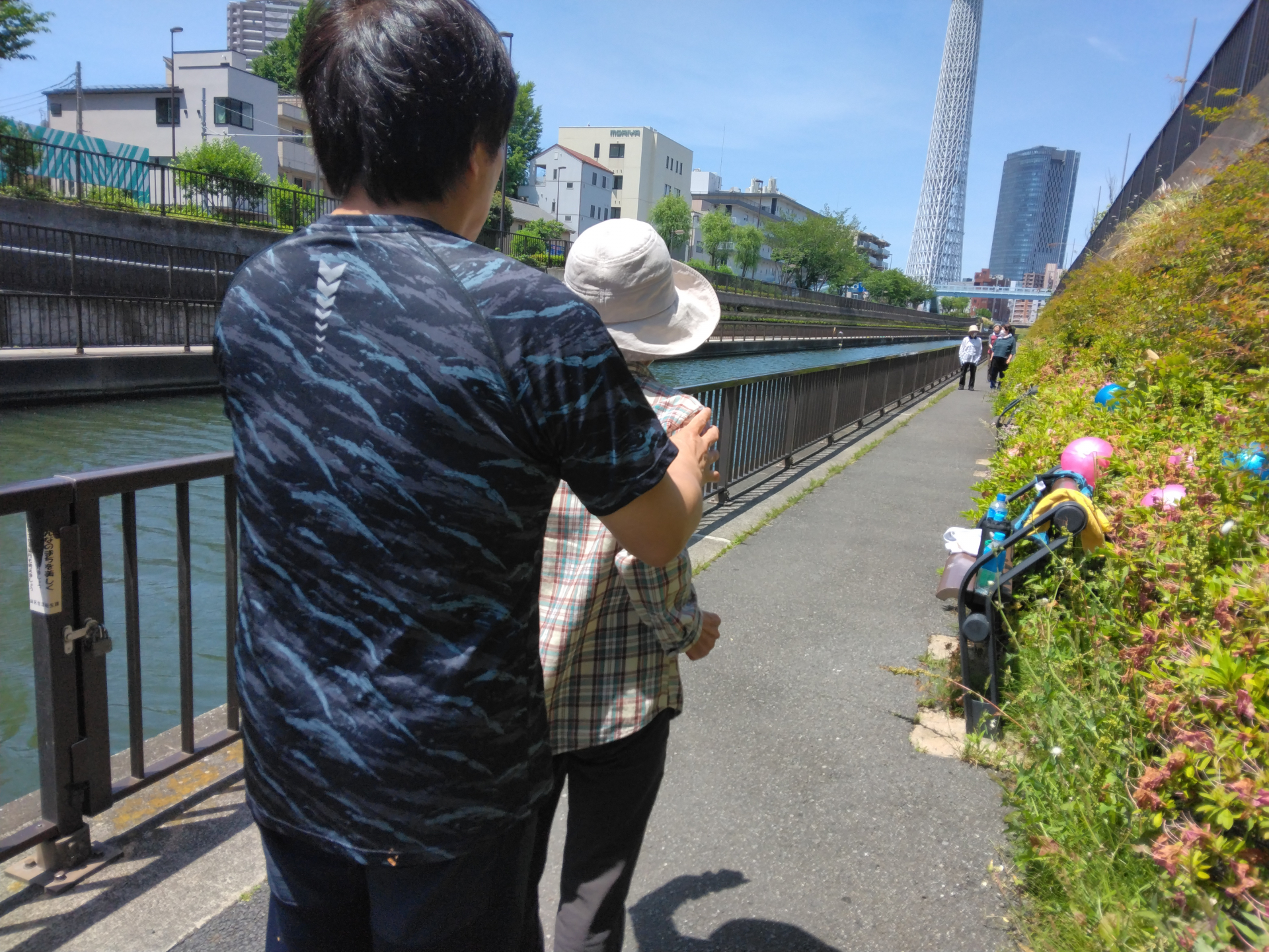 準備運動の後、いよいよ川沿いの小径までお出かけです!