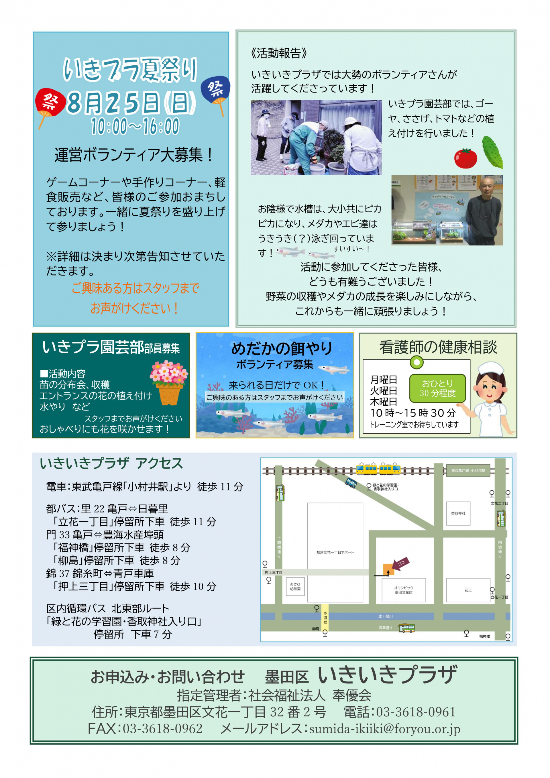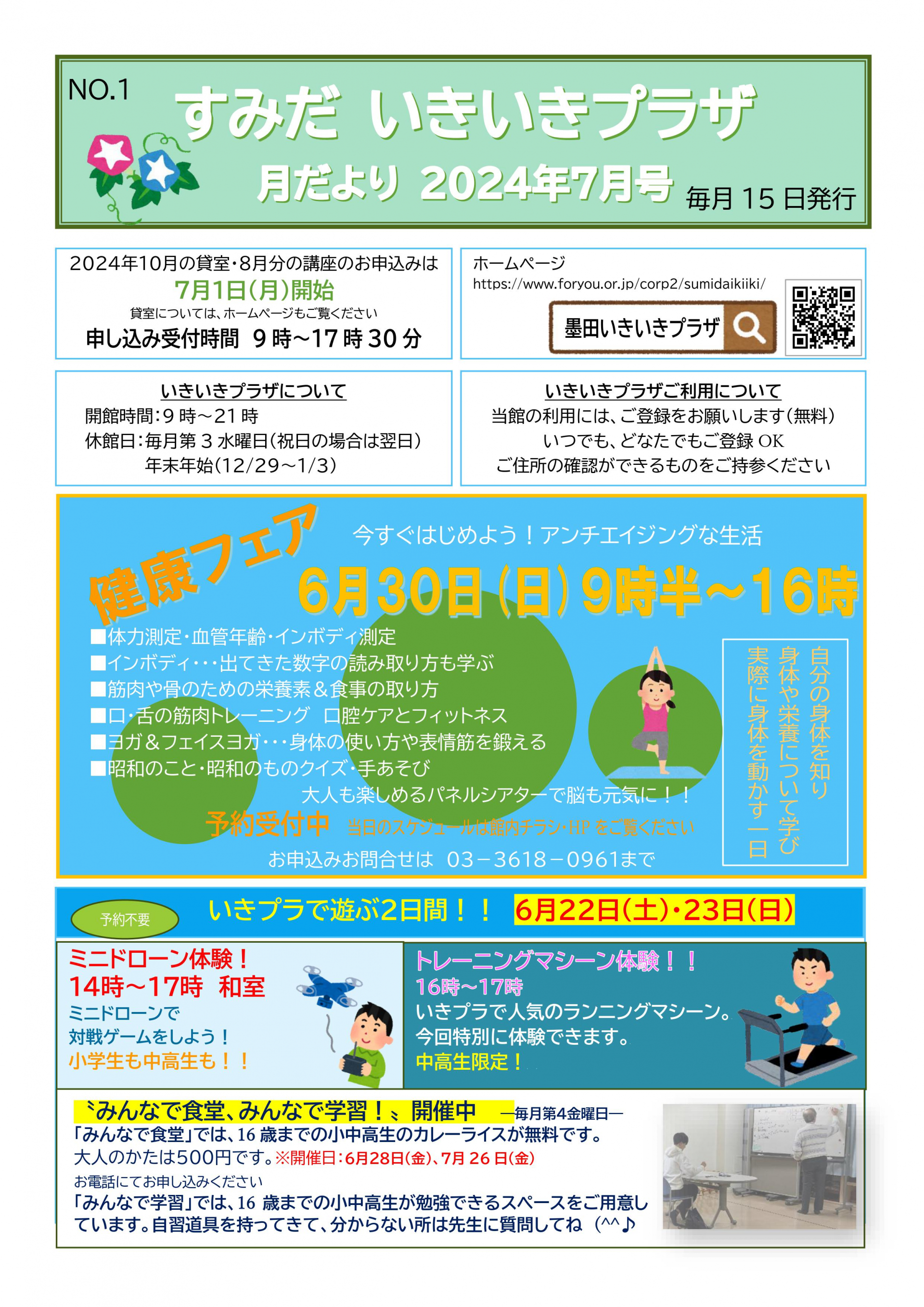 2024.06.15 活動報告 2024年 7月号月だより Tweet シェアする 墨田いきいきプラザの月便りができました。 ぜひ、興味のあるものにご参加ください。 墨田いきいきプラザ N・K 前の記事 2024.06.15 活動報告 2024年 7月のスケジュール 次の記事 2024.06.15 活動報告 いきプラ折り紙「カエルとてるてる坊主」 一覧へ戻る