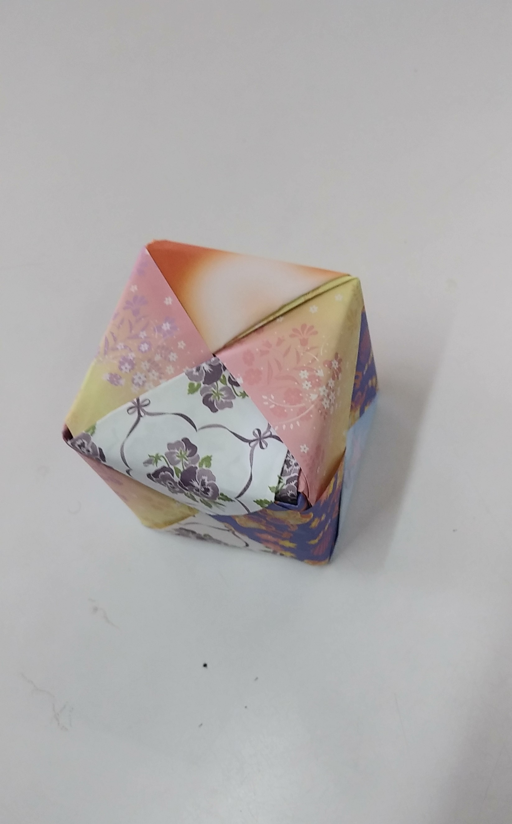 また、折り紙が得意という小学生が現れ、ボランティアのMさんの指導のもと、難しいキューブ型のサイコロに挑戦し、天才ぶりを発揮されていました。出来上がった時は、皆で大拍手です。