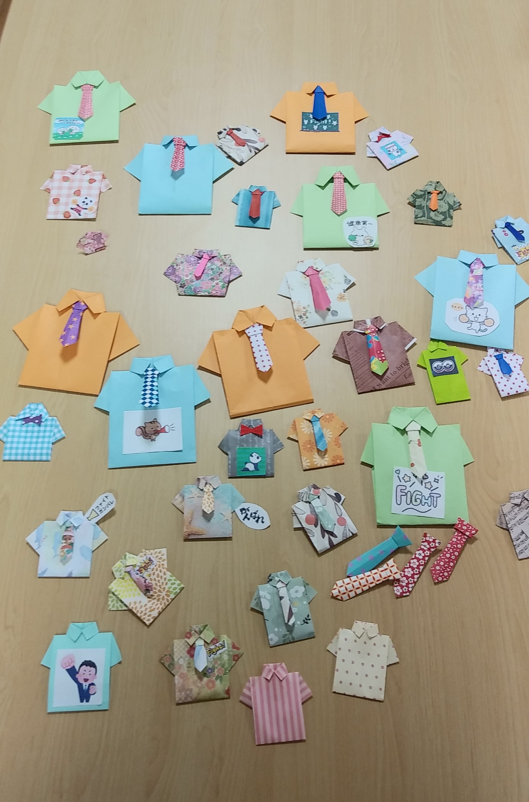6月22日のいきプラ折り紙講座では、健康フェアとのコラボで、健康に関する事柄をデザインした画像やロゴを貼って、ポロシャツを作成。沢山出来上がりました。