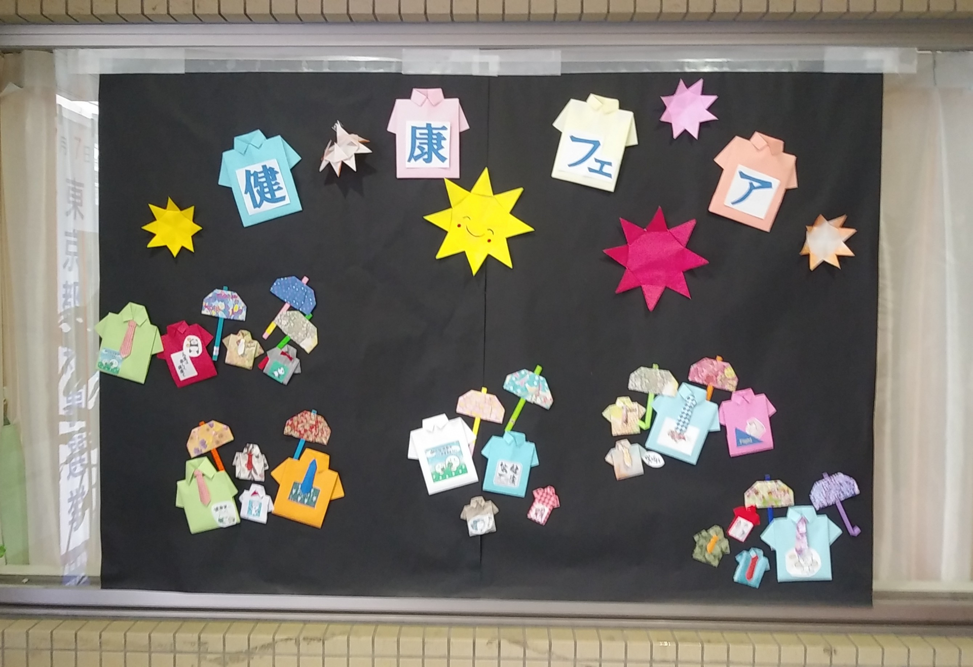 健康フェアは、皆様のお陰で、無事終了しましたが、ポロシャツ、太陽などは、いきいきプラザの入口にしばらく展示していますので、ぜひご覧下さい。
