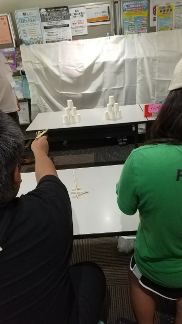 わりばし銃で( ^ω^)・・・紙コップ狙い撃ちーーーーー★