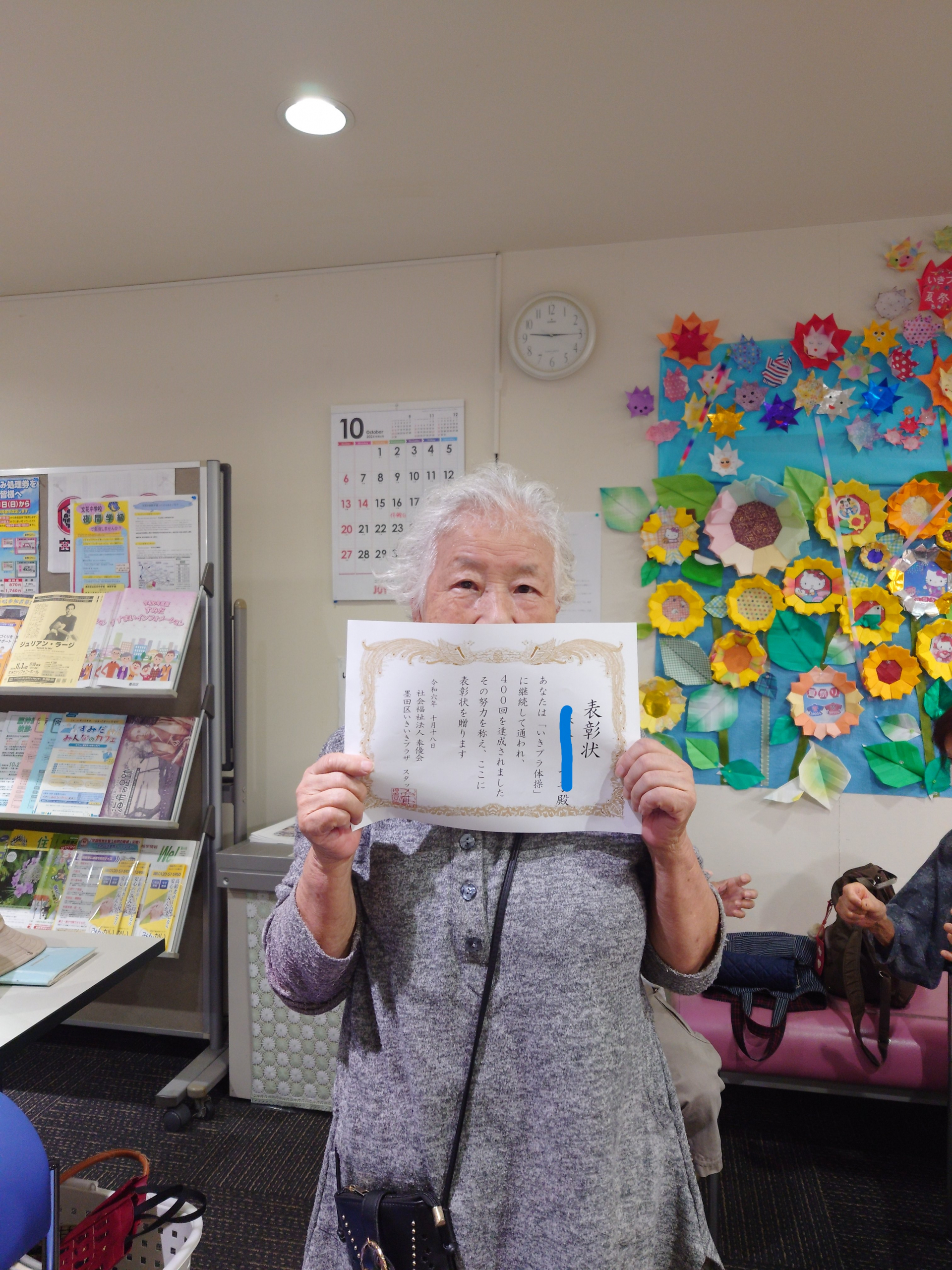 そして、今回のいきプラ体操でMさんが400回を達成しました(#^^#)。