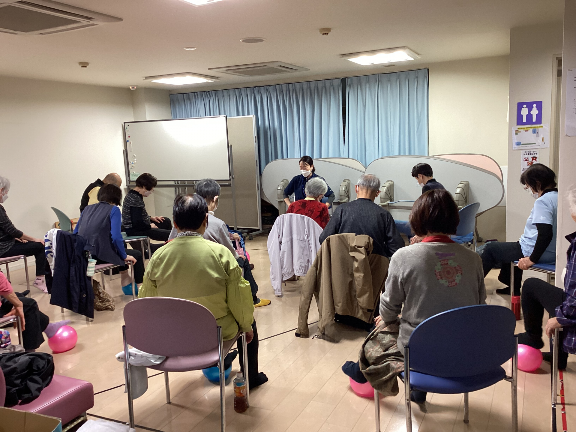 すでにトレーニング室で見守りやアドバイスをしてもらっていますが、体操は今回が初。