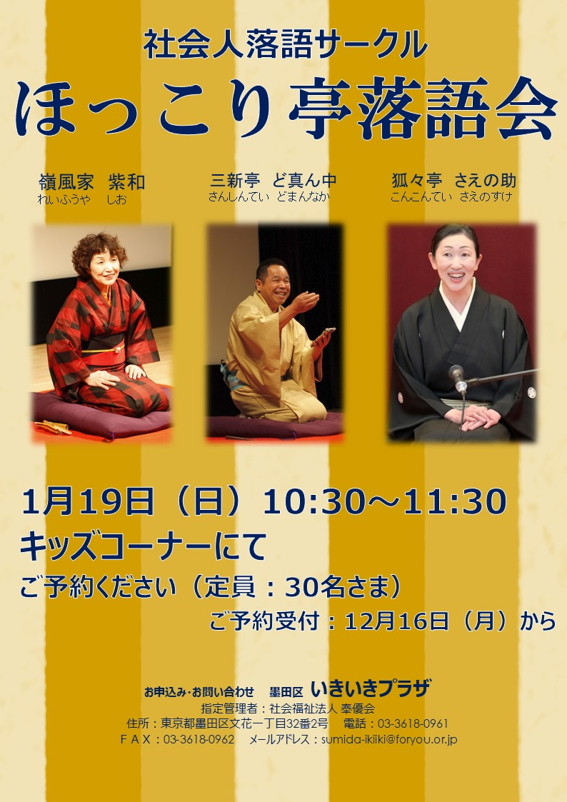 ほっこり亭落語会が、2025年1月19日(日)10:30~11:30 に開催決定☆