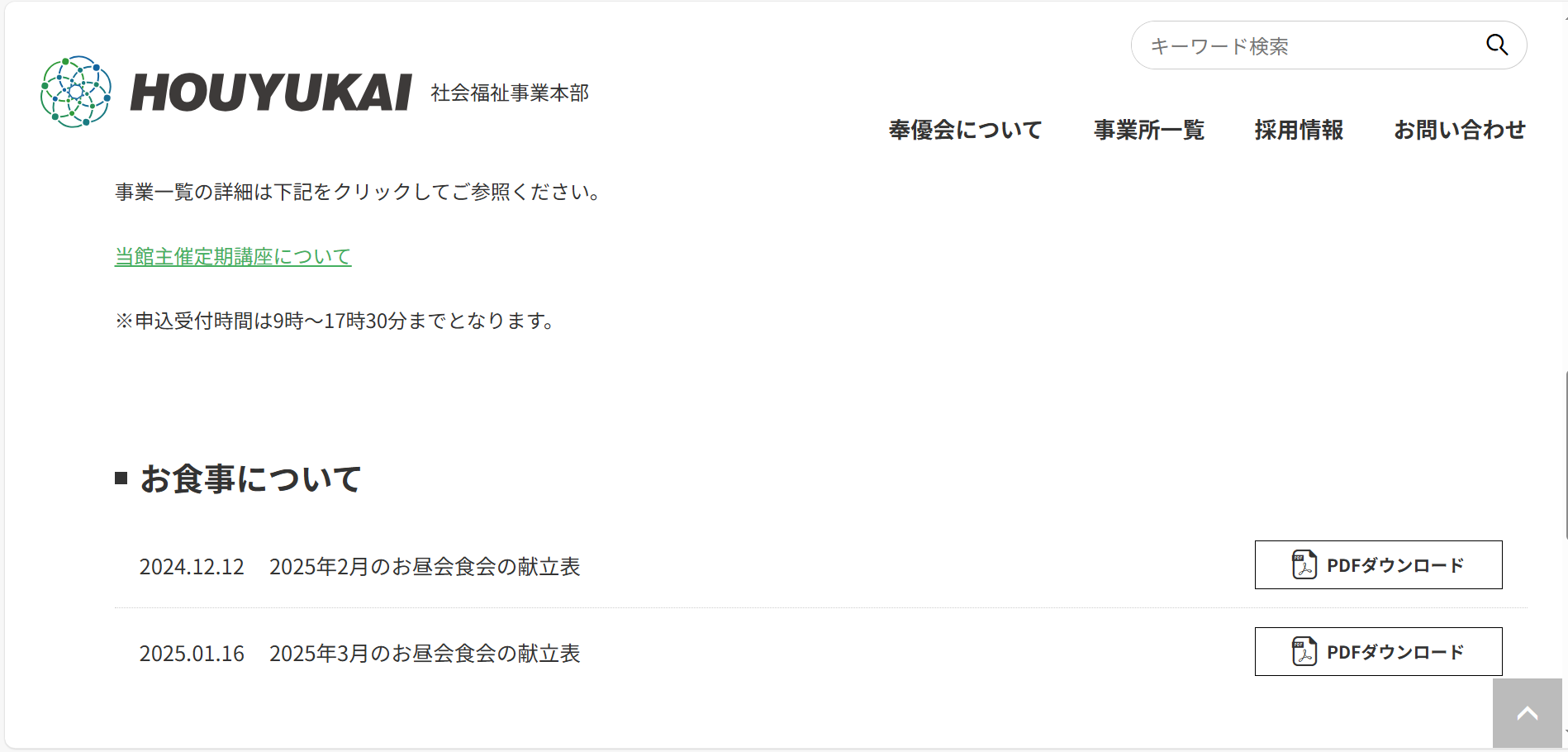 お昼の会食会の献立表がホームページでもご覧になれます。