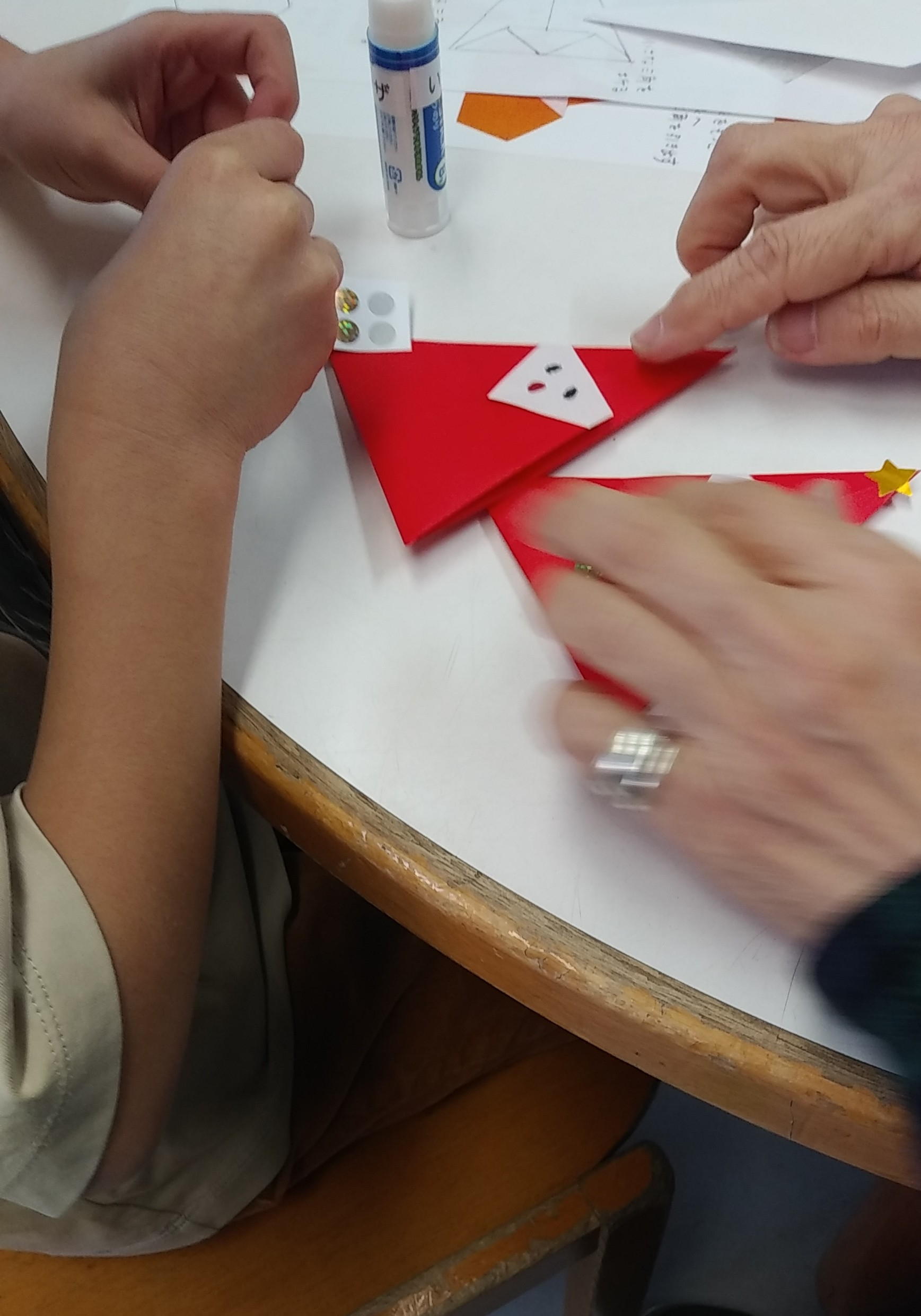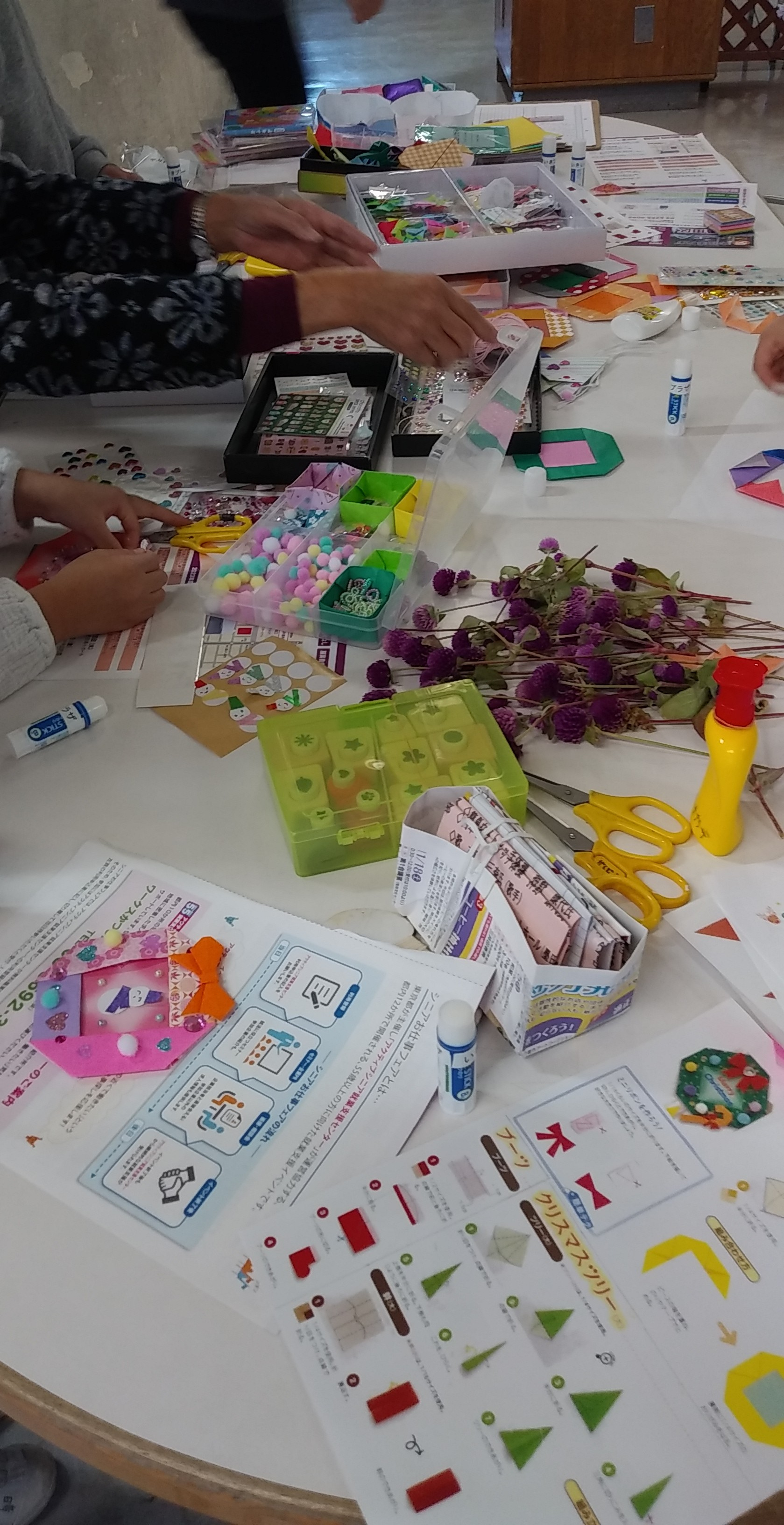 12月13日 午後3時~文花児童館との交流で、学童の皆さんと一緒に折り紙を楽しみました。墨田いきいきプラザのご利用者様2名の方が、ボランティアで手伝って下さり、ありがとうございます。
