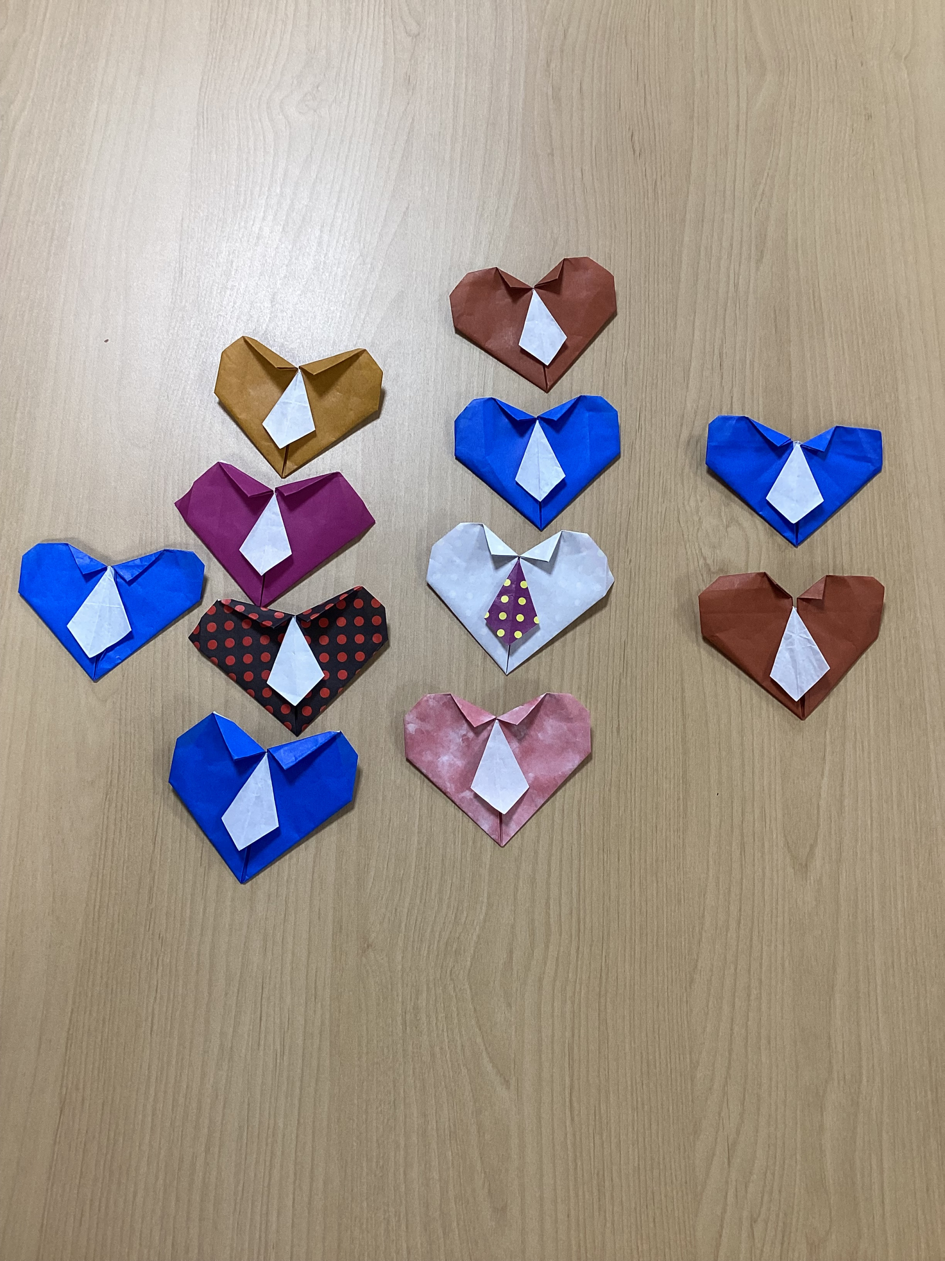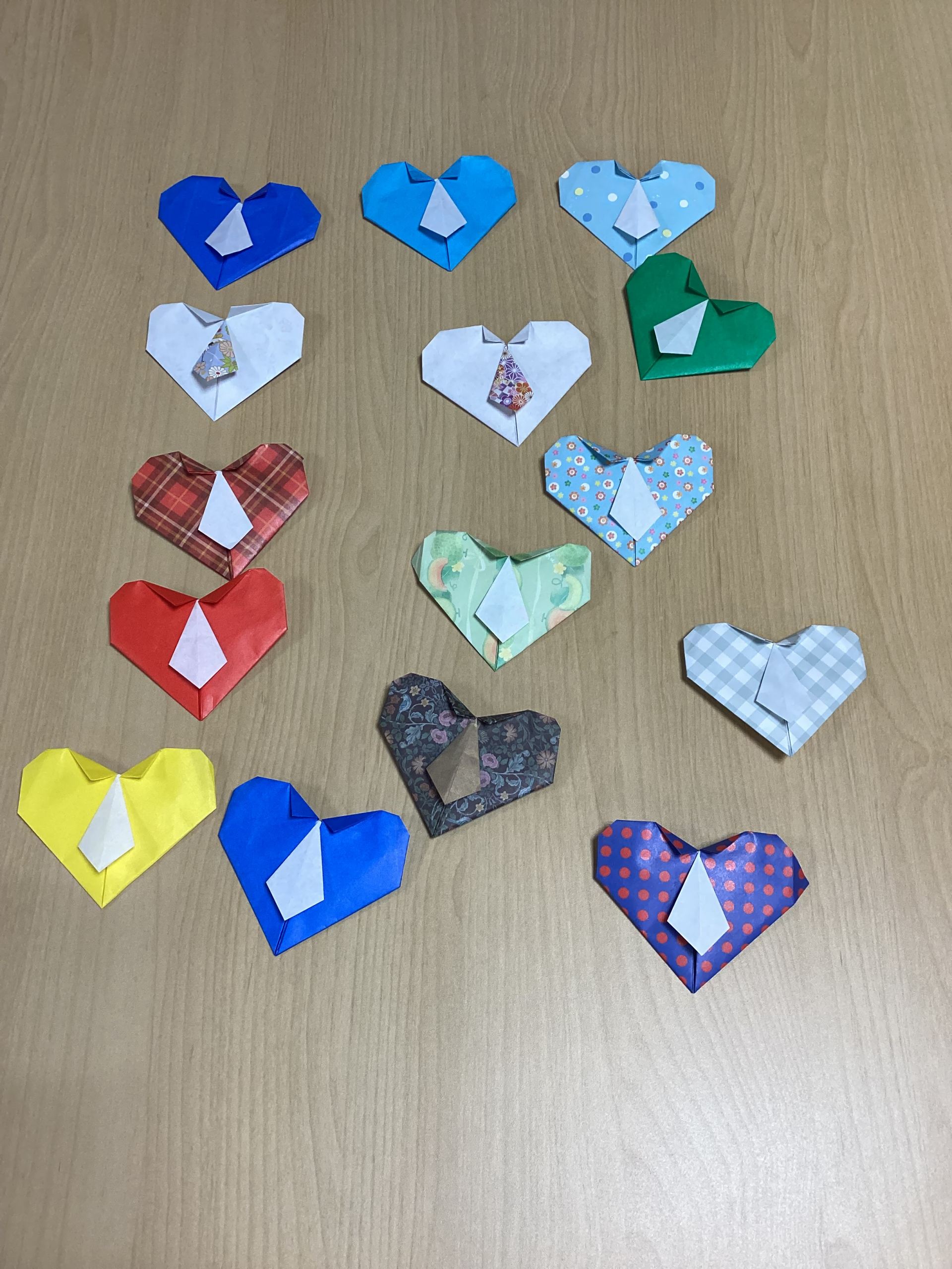 シャツの色やネクタイの色を変えるだけで、たくさんの『ネクタイハート』ができました!!