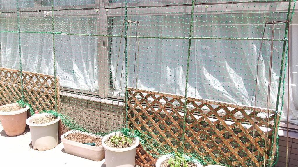 日差しの強いこれからの強い味方 “グリーンカーテン”のネットを