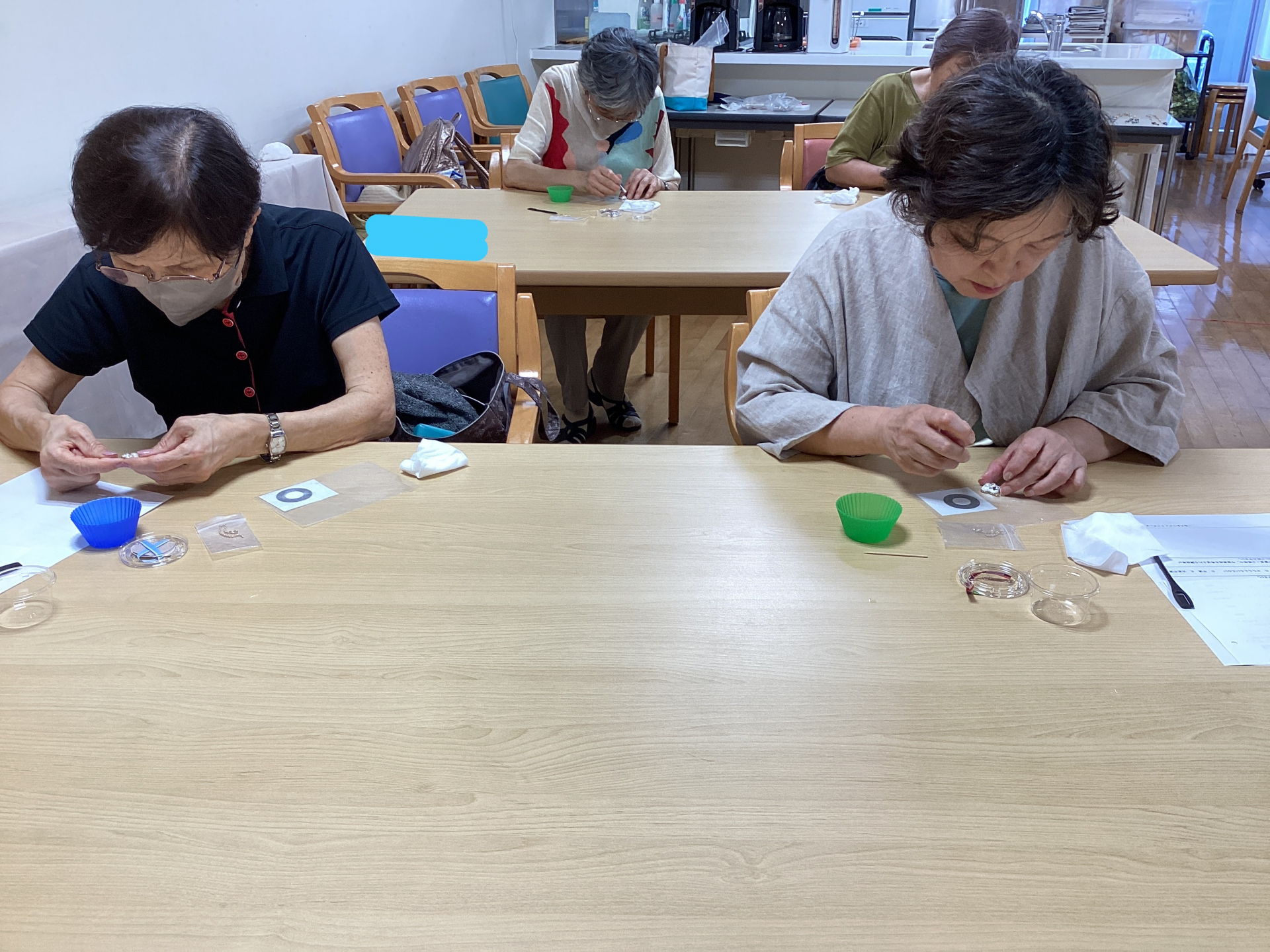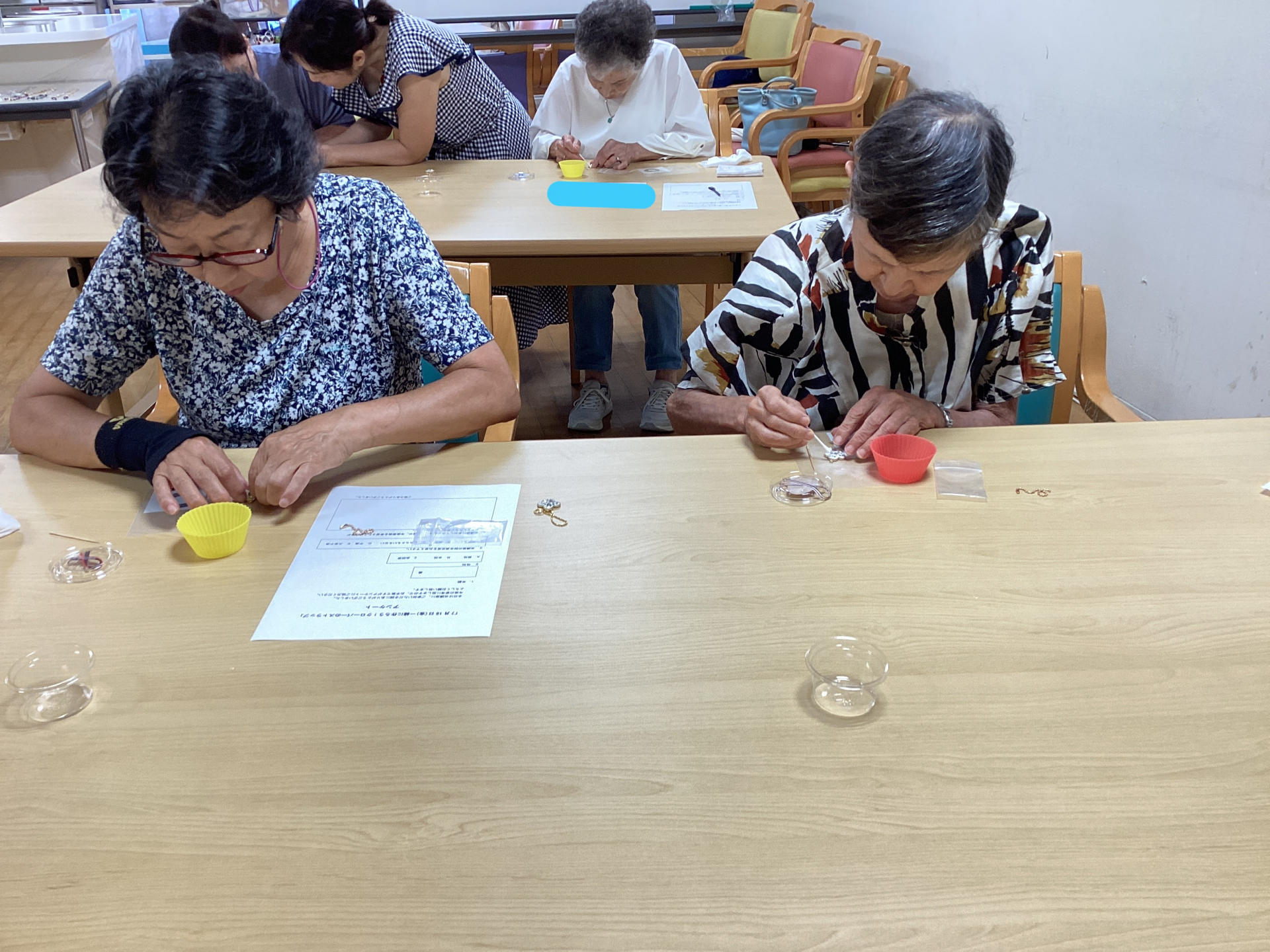 先生に教えて頂きつつ、細かいビーズに目を凝らしながら、真摯に取り組んでおりました。