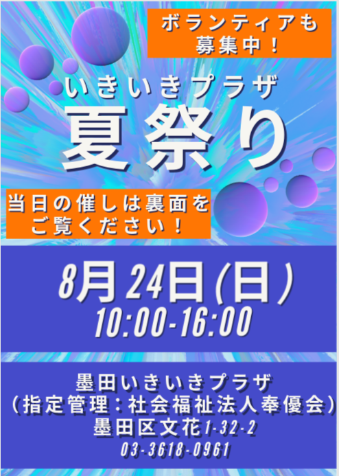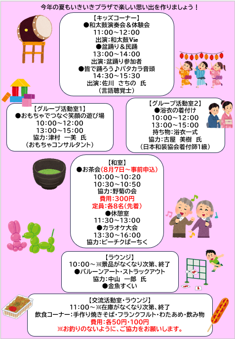 8月24日(日)『いきいきプラザ夏祭り』を開催します!!