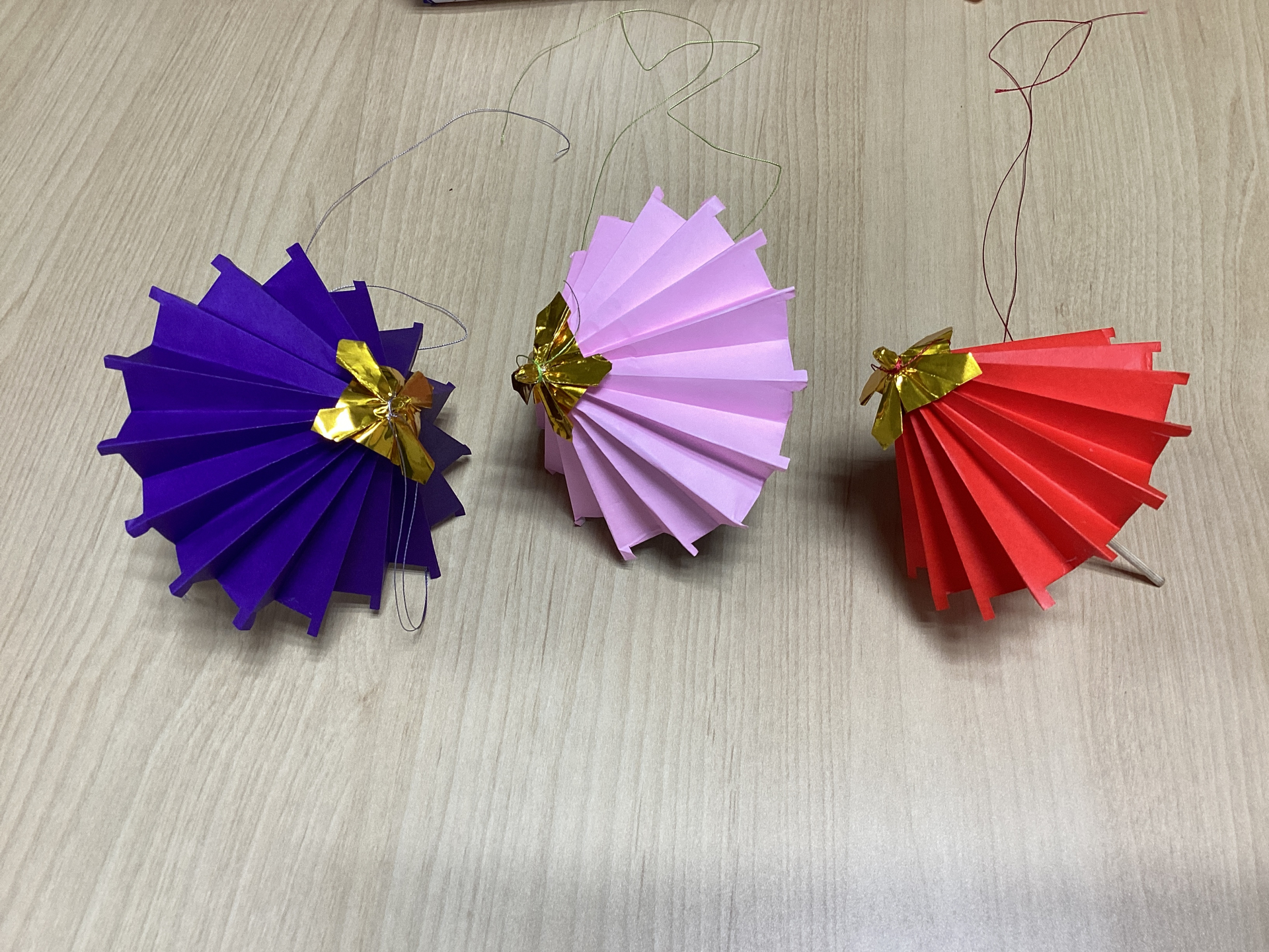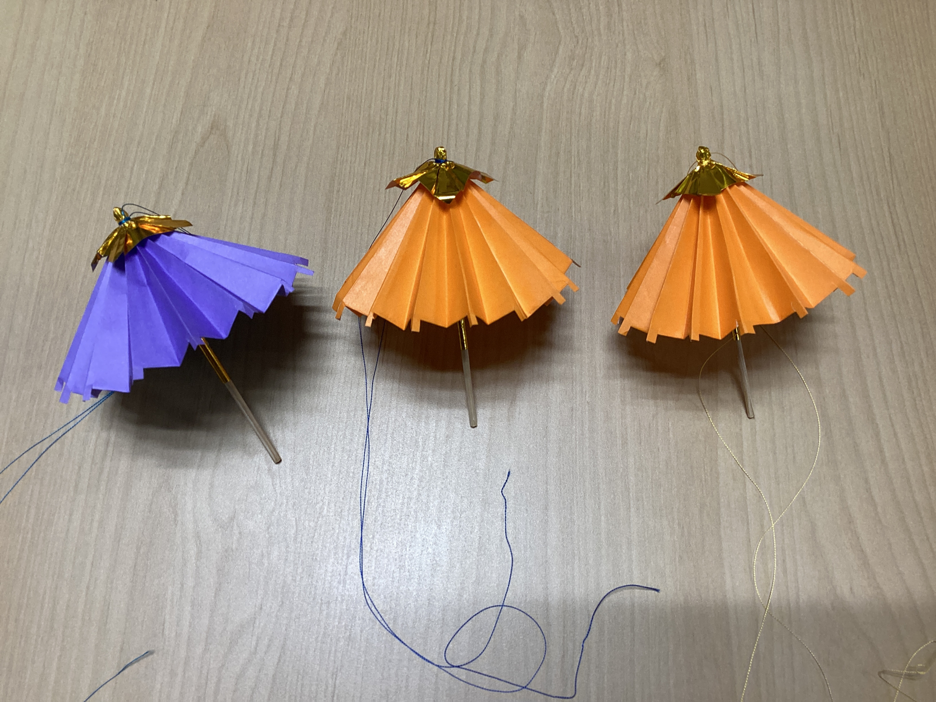 折り紙で番傘を作るのは難しそう…でも作ってみたい!という方のために、下準備をしたうえでの制作でしたが、1個作るのにも細かい作業がたくさんです(^▽^;)