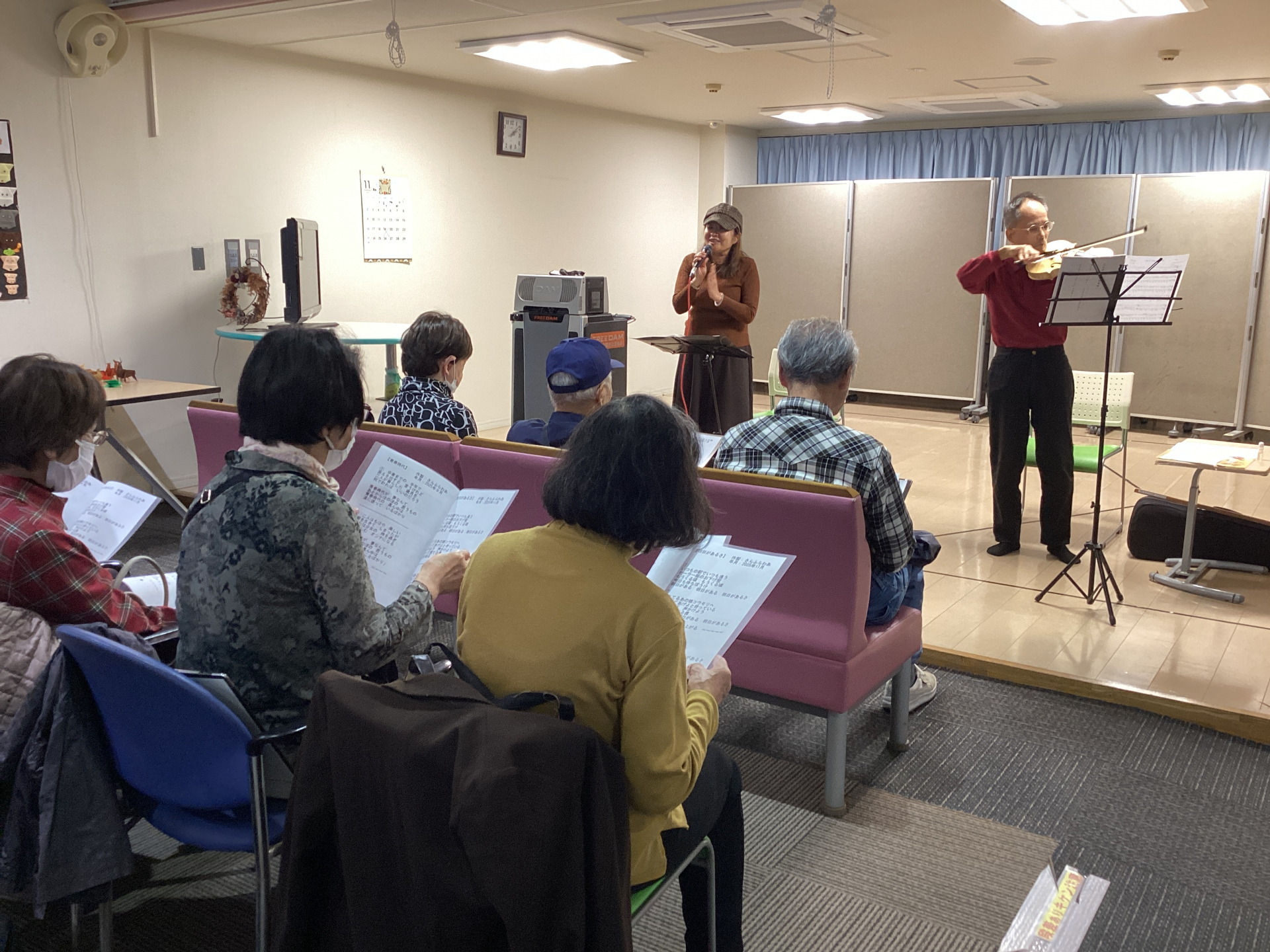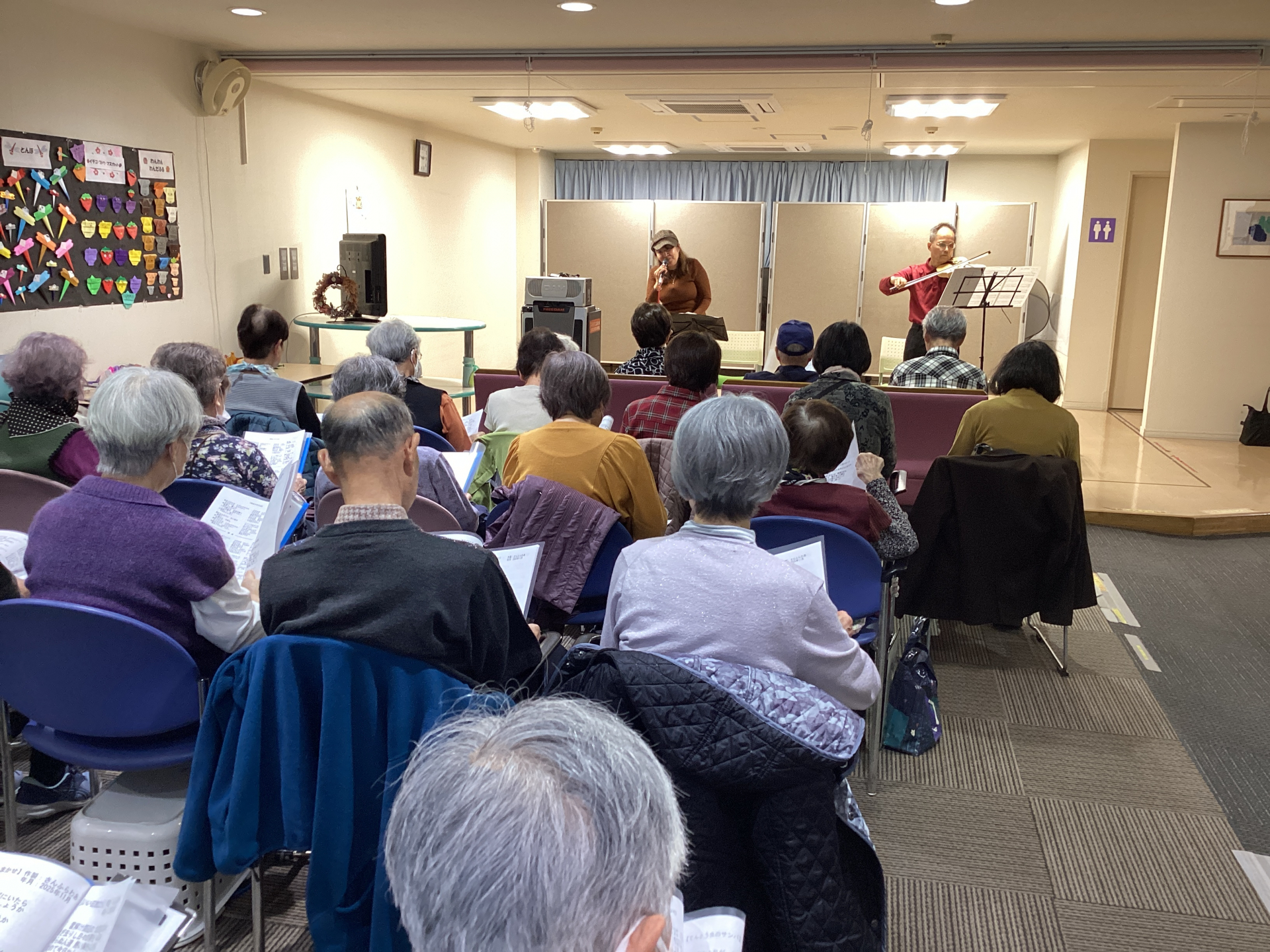 バイオリンの演奏に乗せて、懐かしい歌を一緒に歌いました♪