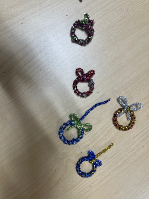 ⇧クリスマスにちなんでキラキラモールでリースを作りました♪