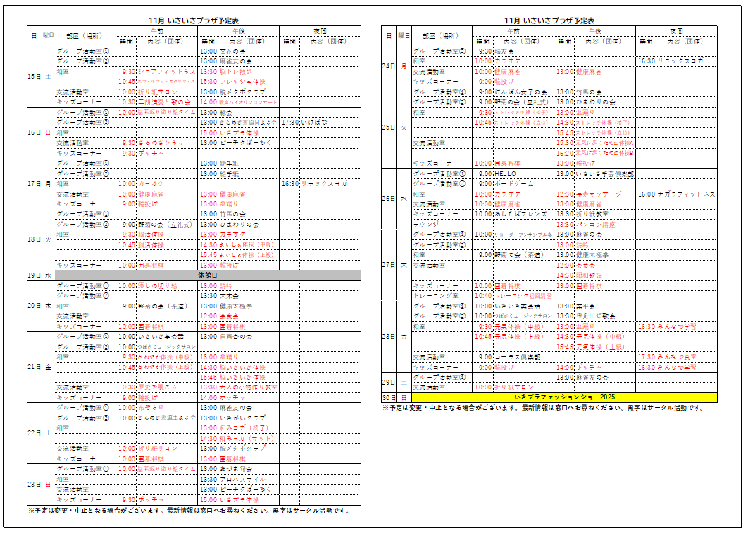 2025.10.16 お知らせ 11月の予定表を発行しました。 Tweet シェアする 11月の予定表を発行しました。 詳細は下記のリンクからご覧できます。 11月予定表 墨田いきいきプラザ yuriko. 一覧へ戻る