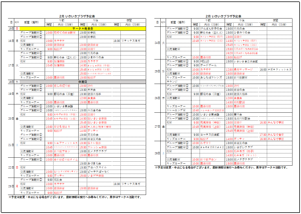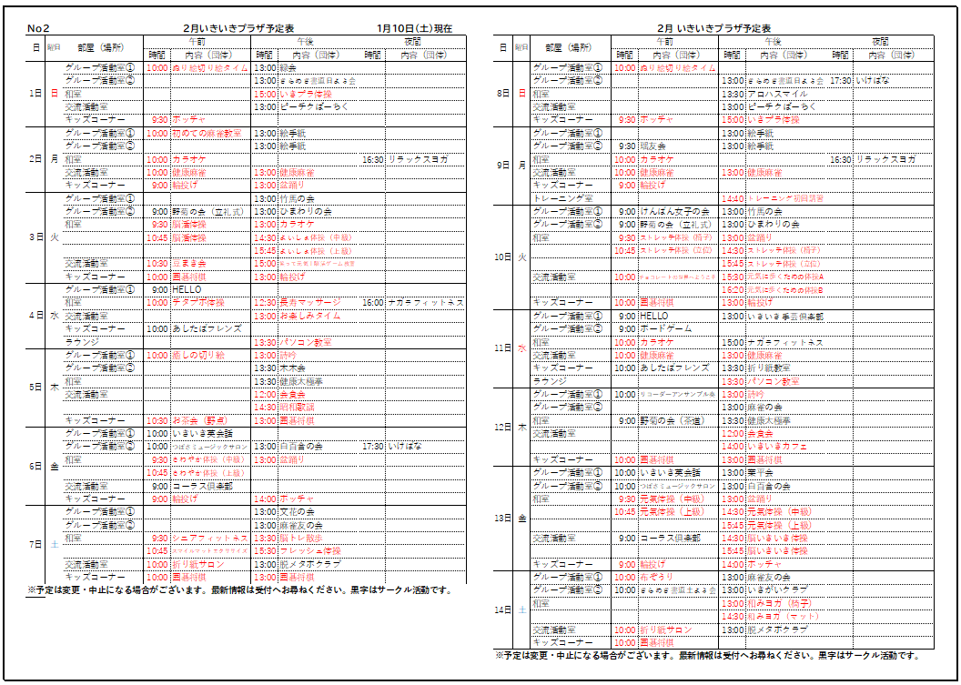 2026.01.15 お知らせ 2月の予定表を発行しました。 Tweet シェアする 2月の予定表を発行しました。 詳細は下記のリンクからご覧できます。 2月予定表.pdf 墨田いきいきプラザ yuriko. 一覧へ戻る