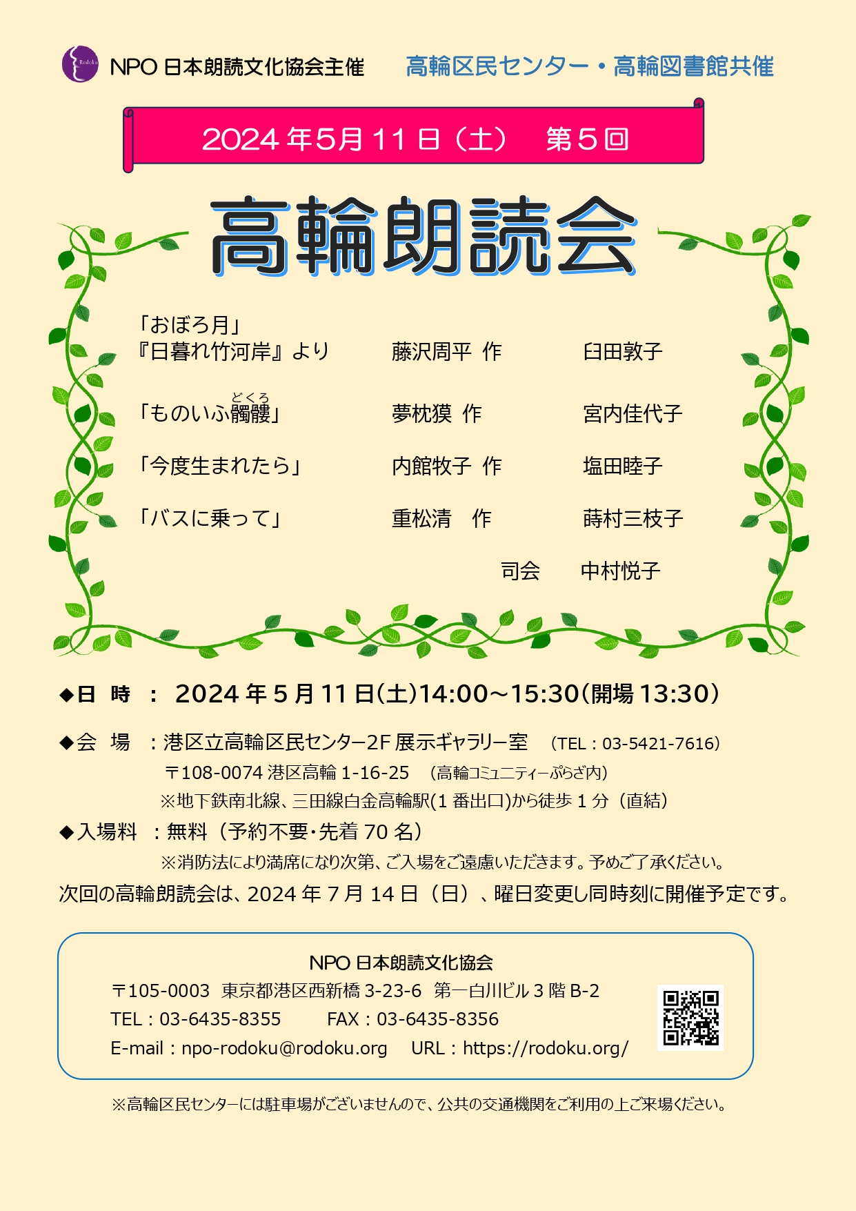 【日 時】2024年5月11日(土) 14:00~15:30(開場13:30)