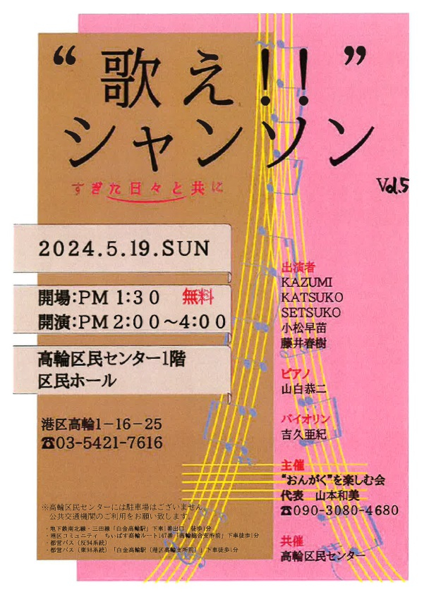”歌え!!” シャンソン すぎた日々と共に Vol.5 が開催されます。