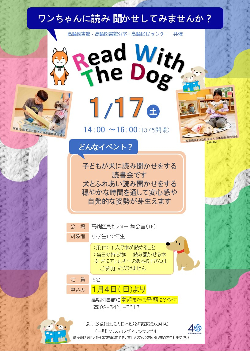 2026年1月17日㈯ 14時~ Read With The Dog 「わんちゃんに読み聞かせしてみませんか?」