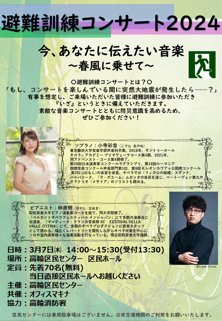 防災意識を高めよう!3/7(木)【避難訓練コンサート2024】を開催いたします!!