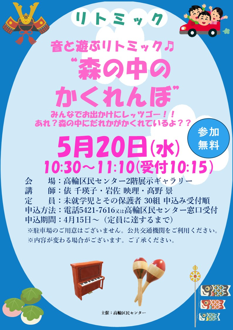 5月20日㈬ 10:30~ 森の中のかくれんぼ 開催予定です。