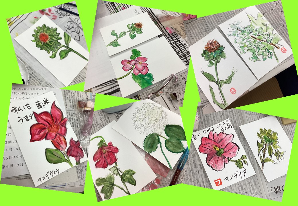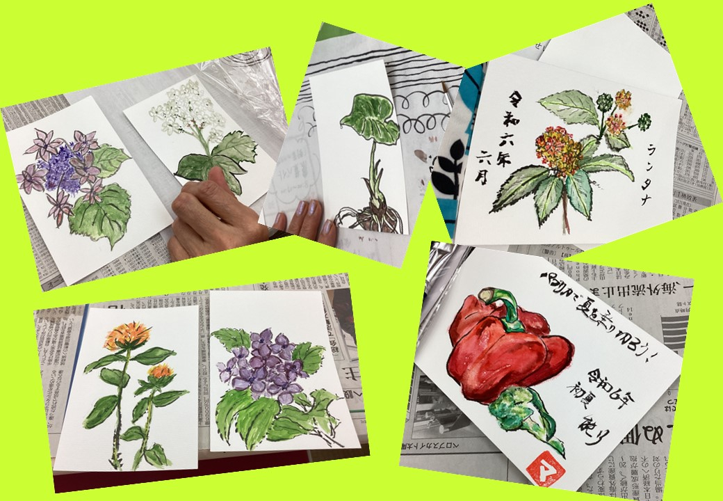 皆さんいつも楽しんで絵手紙を描いていらっしゃいます。