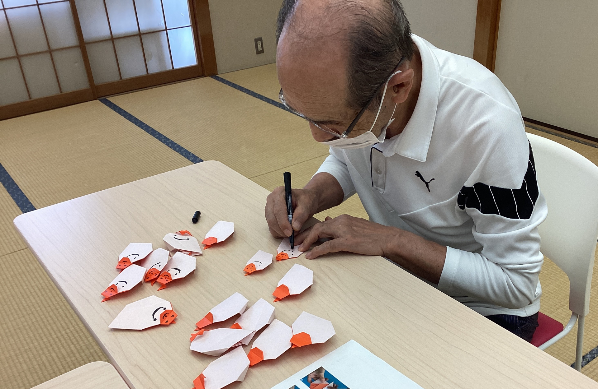2024.10.18 活動報告 おばけのおりがみ Tweet シェアする 10月18日に気軽にボランティア講座を開催しました。 おりがみでハロウィンのおばけを折っていただきました。 折り方をインスタグラムに公開しています。 簡単で可愛いので折ってみてください(^^)v 顔も描いていただいて完成です。 今回もYELLより応募いただいた方がいらっしゃいました。 ご参加ありがとうございました。 来週は編み物でお花のモチーフを編んでいただきます。 ご参加お待ちしております。 滝野川老人いこいの家 職員H.K 前の記事 2024.10.20 活動報告 Zoomの使い方講座~ミーティング招待編~ 次の記事 2024.10.17 活動報告 メモスタンド作り 一覧へ戻る