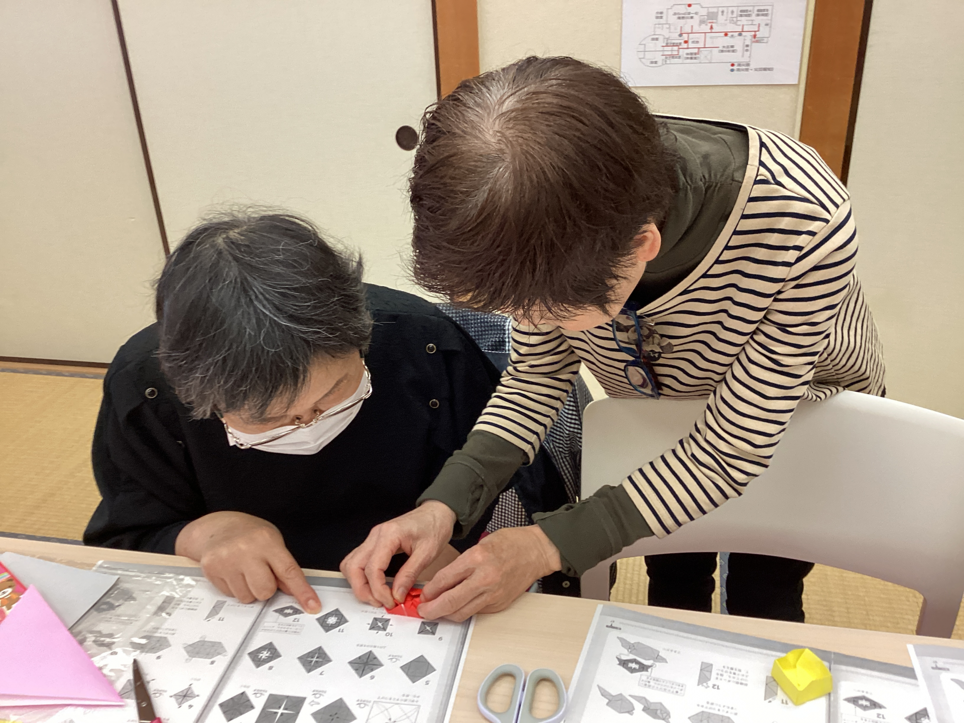 2024.11.15 活動報告 まゆみ先生のおりがみ教室 秋のばら Tweet シェアする まゆみ先生のおりがみ教室では秋のばらを折りました。 お花のは人気ですが難しいですよね(;^_^A アセアセ・・・ 今回もYELLから応募いただいたボランティア様にお手伝いいただきました。 お隣の方に教えてくださる方もいらっしゃいました(^^)v 楽しいおりがみ教室の様子はインスタグラムをご覧ください。 可愛いばらの小箱が完成しました。 ご参加ありがとうございました。 滝野川老人いこいの家 職員H.K 前の記事 2024.11.15 活動報告 らくらく体操♪ 次の記事 2024.11.14 活動報告 落ち葉がいっぱい!絵手紙サロン 一覧へ戻る