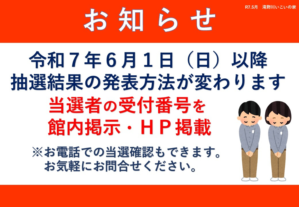 当選者の受付番号を館内掲示・HP掲載させていただく事となりましたので、