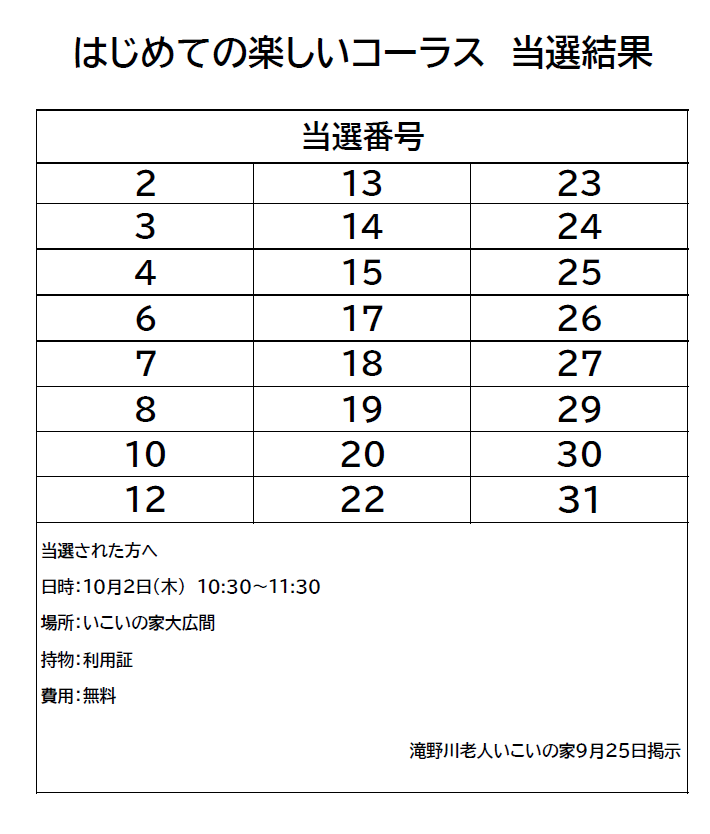 2025.09.25 お知らせ 【当選発表】はじめての楽しいコーラス Tweet シェアする 前の記事 2025.09.25 お知らせ 地域の薬局さんによる『秋のヘアケア講座』 次の記事 2025.09.25 お知らせ 【北区ニュース10月1日号掲載】 「終活って何からはじめればいいの?が分かるセミナー」開催のお知らせ 一覧へ戻る