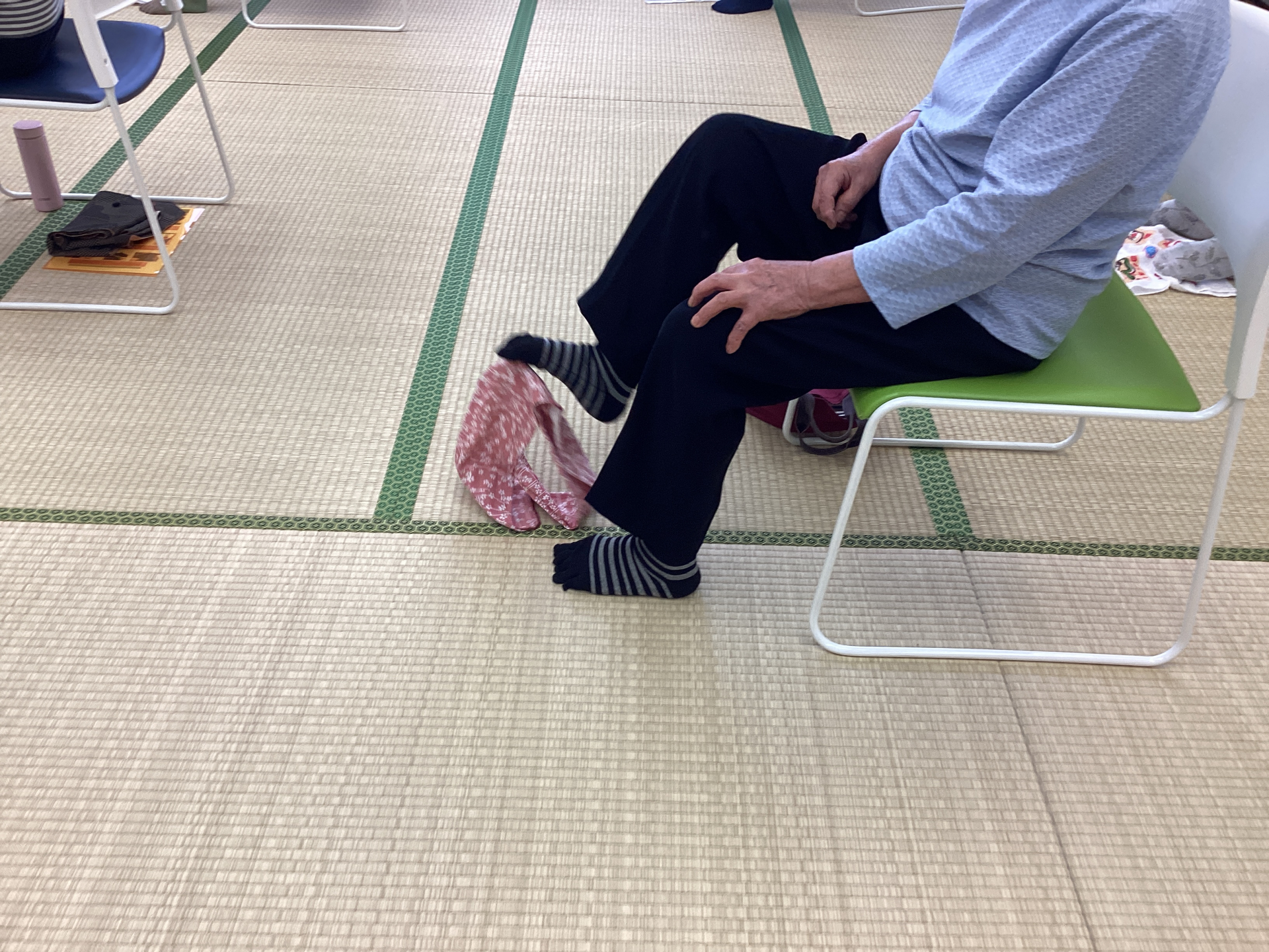 足でタオルを掴んだりと遊び感覚で楽しそうでした。