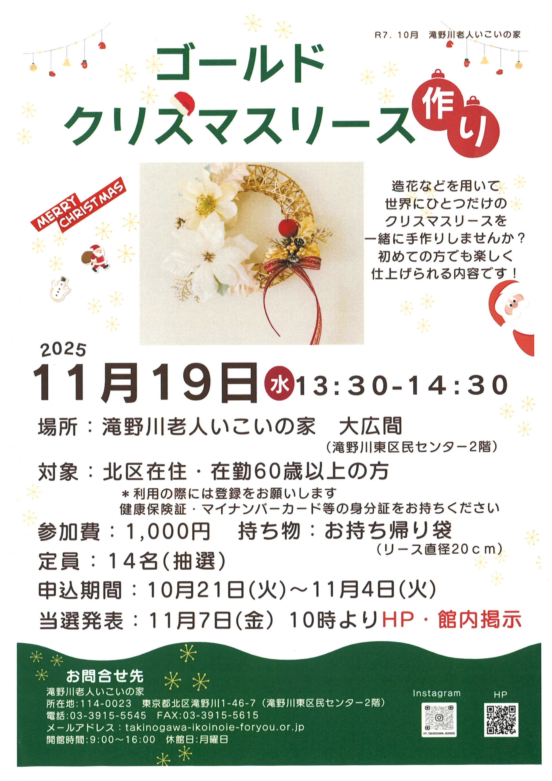【北区ニュース10月20日号掲載】 「ゴールドクリスマスリース作りの講座」開催のお知らせ