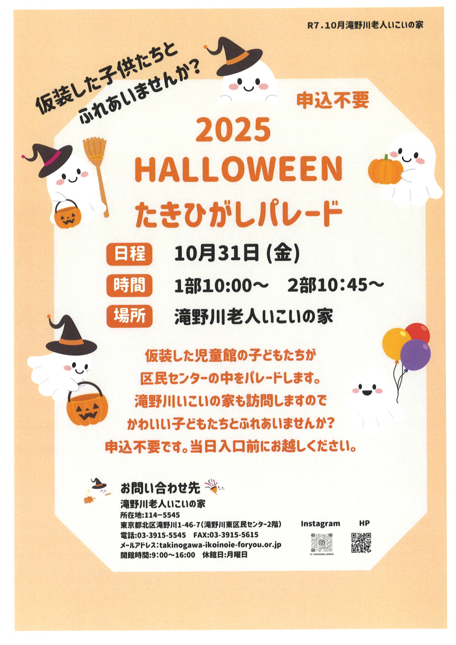 たきひがし(児童館の子どもたちによる)ハロウィン パレード開催のお知らせ