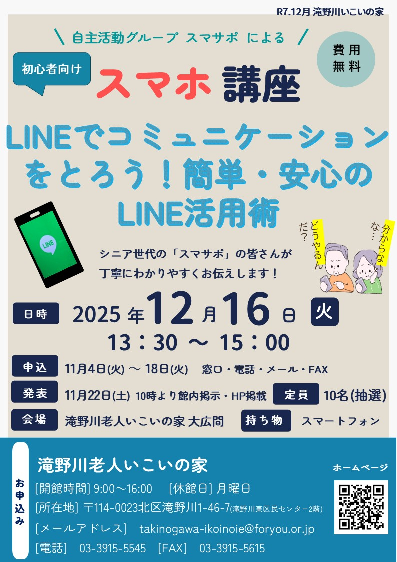 【北区ニュース11月1日号掲載】初心者向けスマホ講座~LINEでコミュニケーションをとろう!簡単・安心のLINE活用術~開催のお知らせ