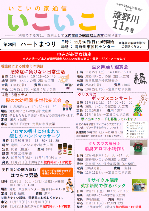 抽選発表は11月22日(土)10時より館内掲示・HP掲載します。