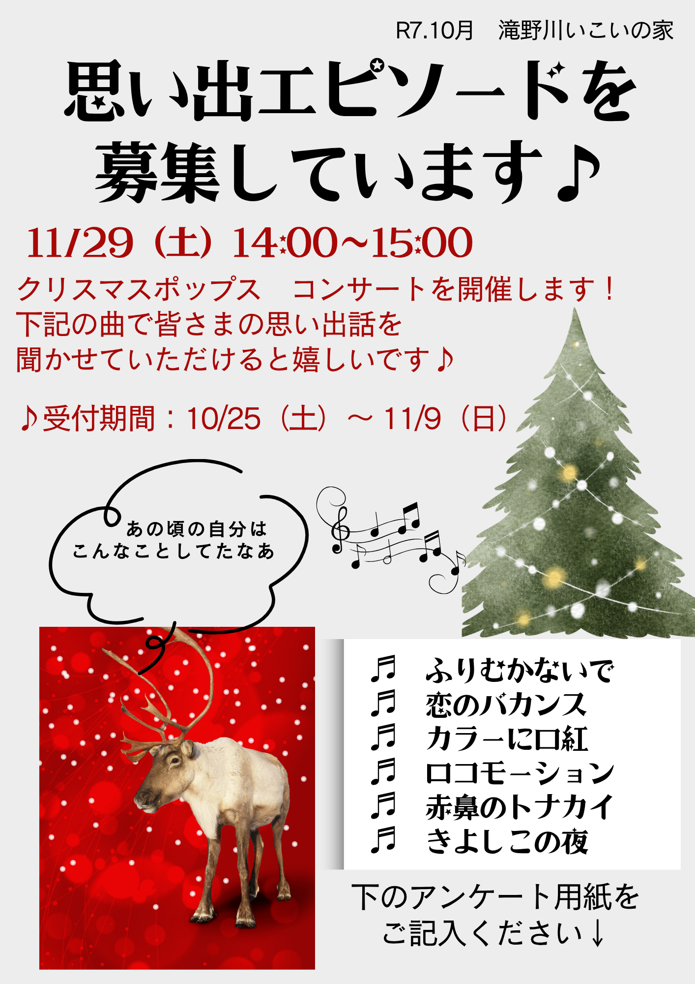 【ご案内&募集】クリスマスポップスコンサート🎄♬思い出エピソードも募集しています!