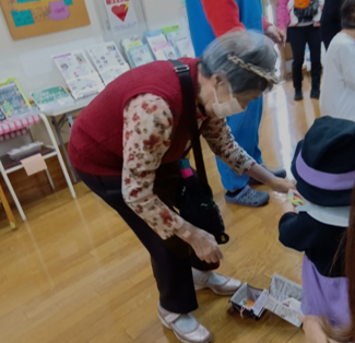 事前にボランティアさんと作成しました【メッセージカード】とお菓子の袋を、一人一人にお渡ししました🎃♪
